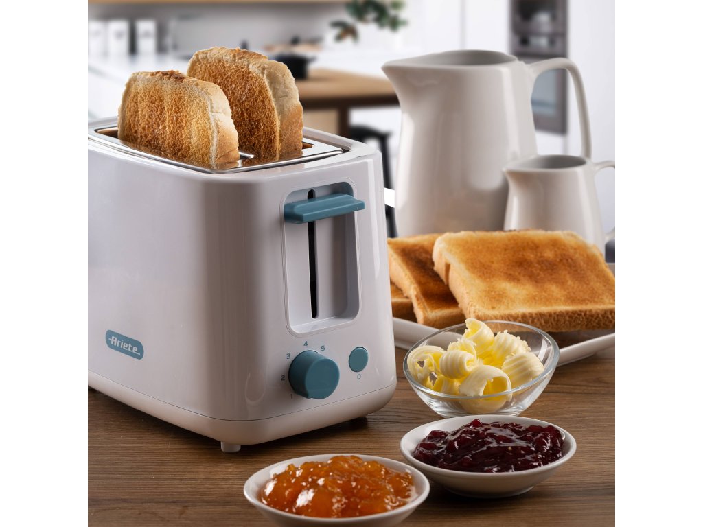 Elektrický topinkovač • na 2 topinky • výkon 810 W • 6 nastavení intenzity opékání • 3 funkce: opékání, rozmrazování, ohřev