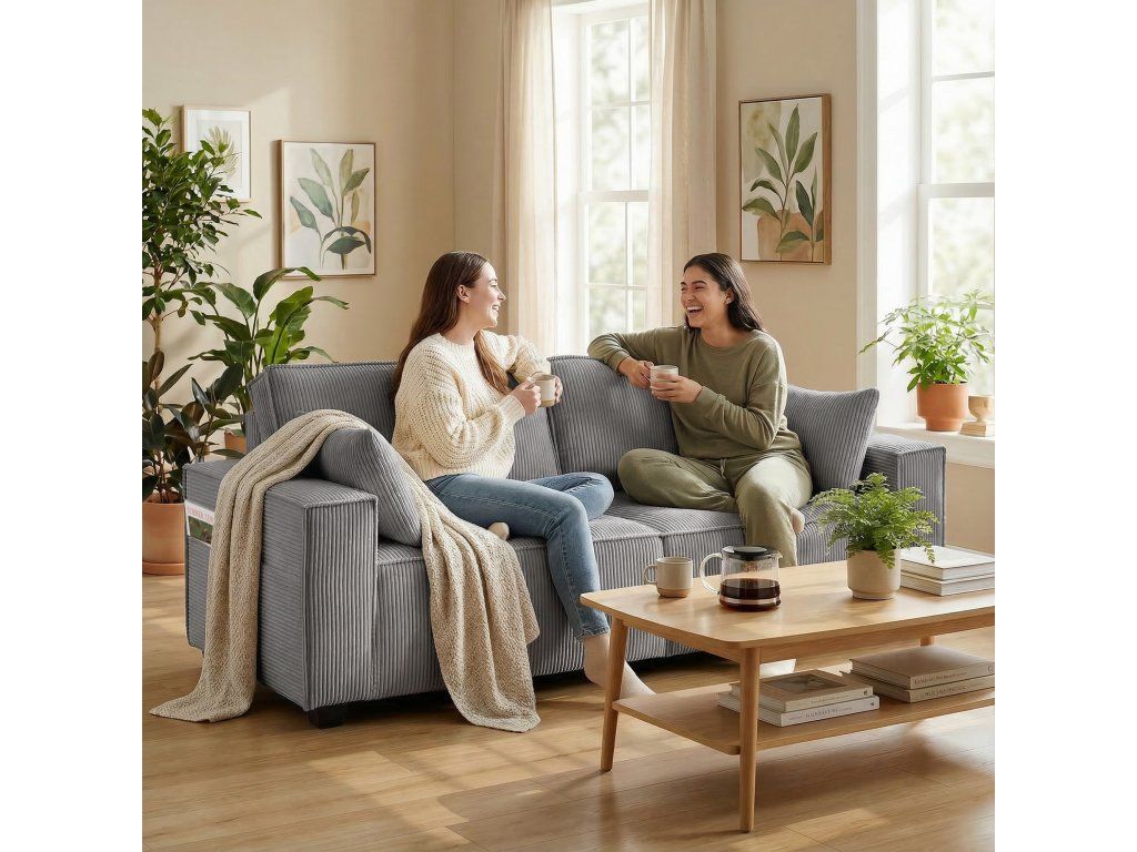 ✔ Pohodlná manšestrová tkanina dodává vašemu obývacímu pokoji teplo a odolnost, ideální pro pohodlnou pohovku.