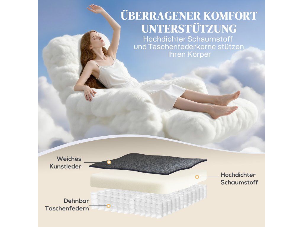 Měkká a prodyšná umělá kůže: Luxusní umělá kůže tohoto polohovacího křesla nabízí prodyšný a měkký povrch, který zajišťuje pocit uvolnění i při dlouhém sezení nebo sledování televize. Materiál se také snadno udržuje a čistí.