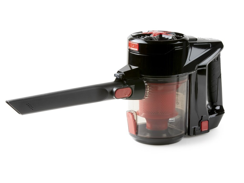 Výkonný bezdrátový tyčový vysavač se silnou 22,2V baterií s vysokou kapacitou vydrží vysávat až 50 minut v ECO režimu jako ruční vysavač, nebo na plný výkon spolu s elektricky poháněný turbokartáčem až 25 minut. S aku vysavačem 2 v 1 zvládnete hravě vysát všechny podlahy, nebo koberce i čalounění pohovky, nebo si během chvilky vysajete a uklidíte celý interiér auta, aniž byste museli přenášet váš velký těžký vysavač s kabelem. Cyklónový systém filtrace umožňuje vysávat bez ztráty výkonu déle než běžný sáčkový vysavač. Navíc můžete snadno po každém vysávání stiskem tlačítka vysypat obsah prachové nádoby rovnou do koše a mít tak vysavač stále připravený k vysávání.