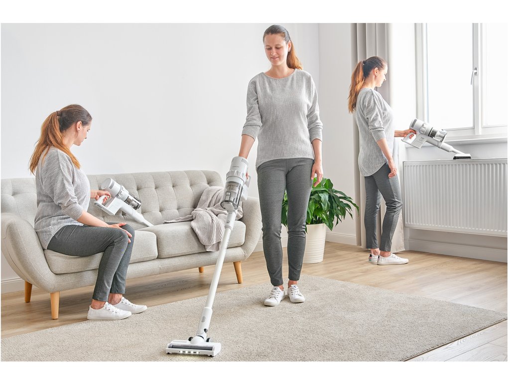 Stiskem jednoho tlačítka lze jednoduše odejmout ruční jednotku, která je spolu s výměnným příslušenstvím dokonalým pomocníkem pro čištění prachu z nábytku nebo interiéru auta.