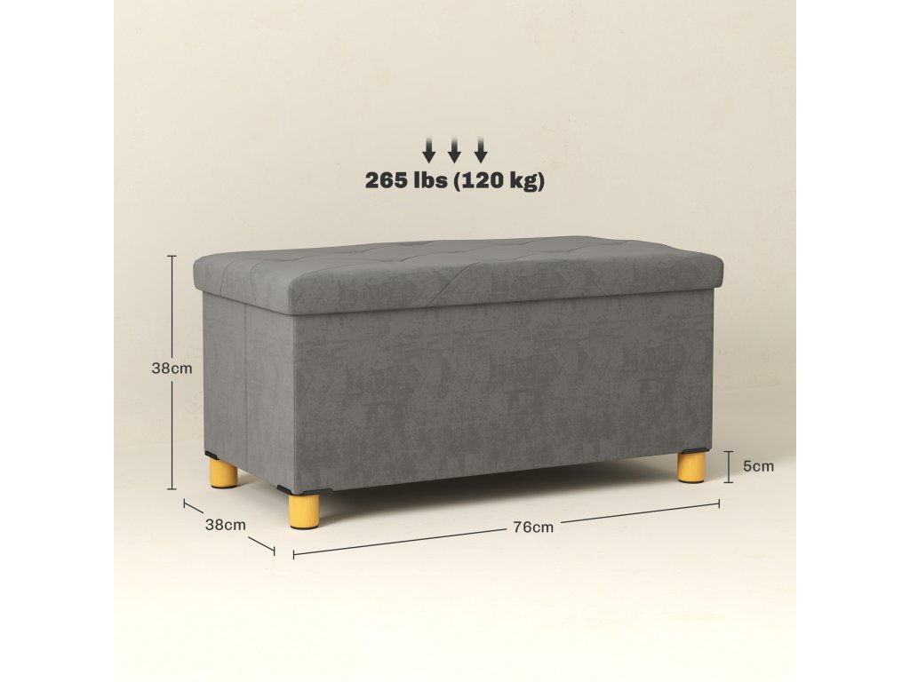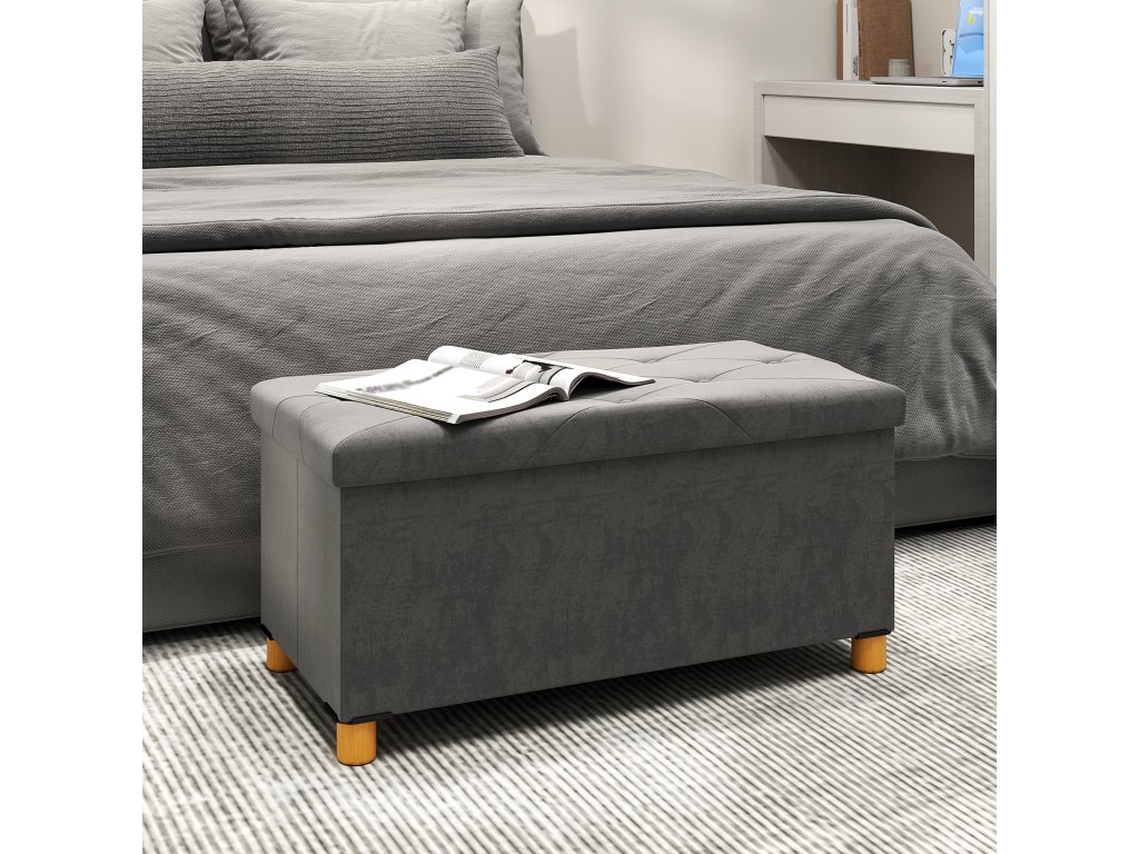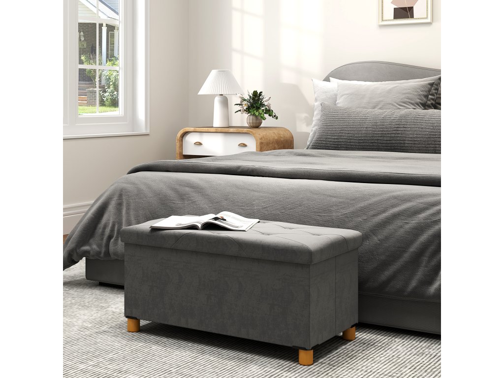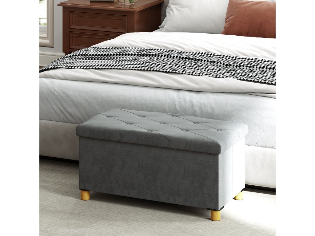 Úložná lavice HOMCOM o objemu 67 litrů, s úložným prostorem a víkem, měkký potah v sametovém vzhledu, pro různé místnosti, šedá barva