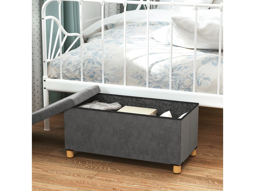 Poznejte kouzlo a všestrannost lavice HOMCOM s úložným prostorem, která v sobě spojuje styl a funkčnost. Pod sametově hebkým víkem lavice s úložným prostorem je dostatek místa na deky, knihy a další předměty. Více než jen úložný prostor: truhlu lze použít jako útulné sedátko nebo podnožku a do každé místnosti vnese moderní eleganci!