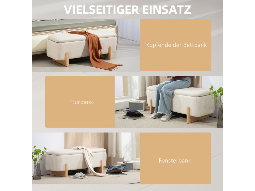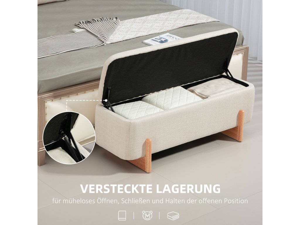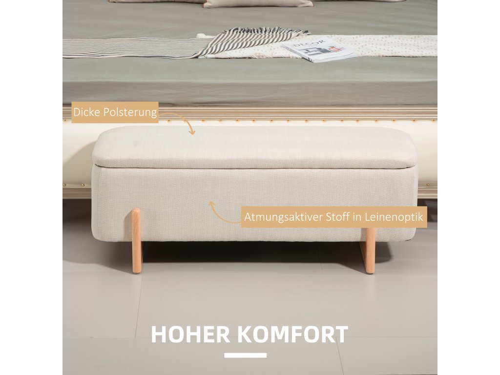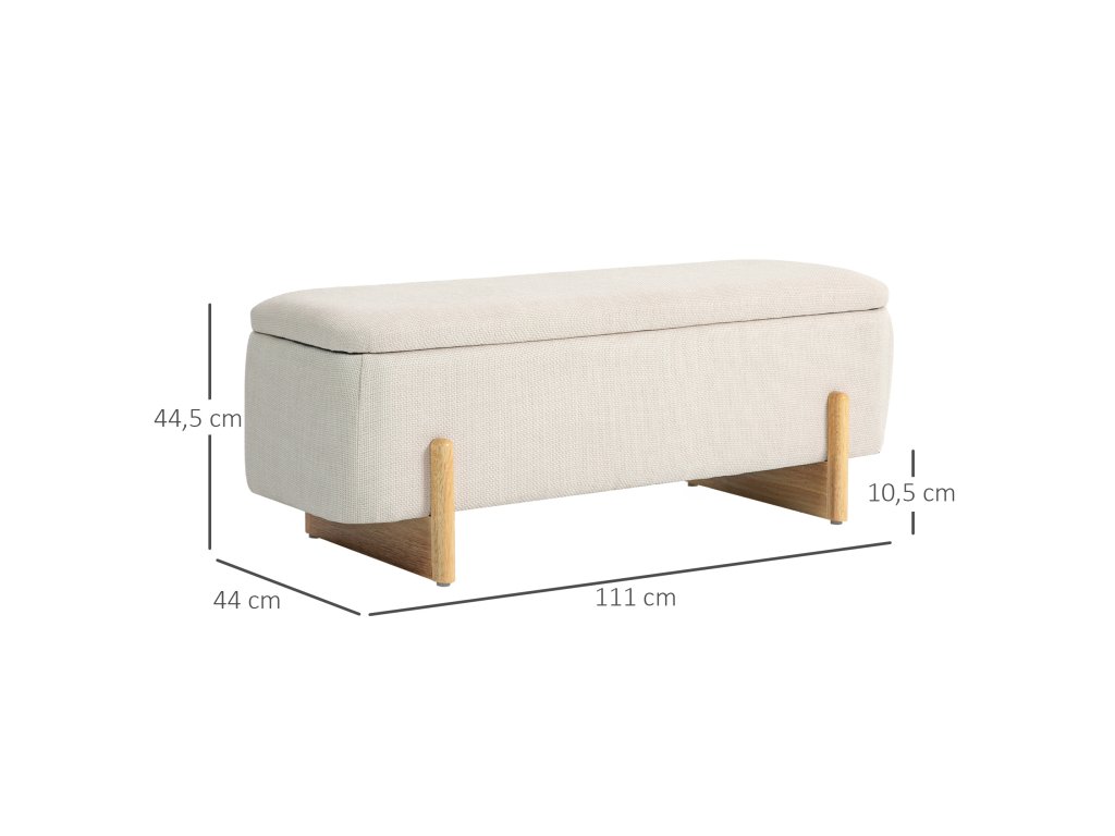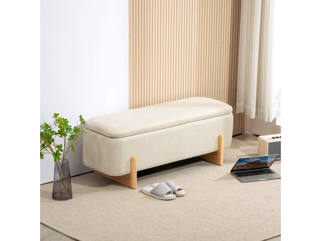 Úložná stolička HOMCOM, sedák s pěnovým polstrováním, lněný vzhled, 111 x 44 x 44,5 cm, krémově bílá