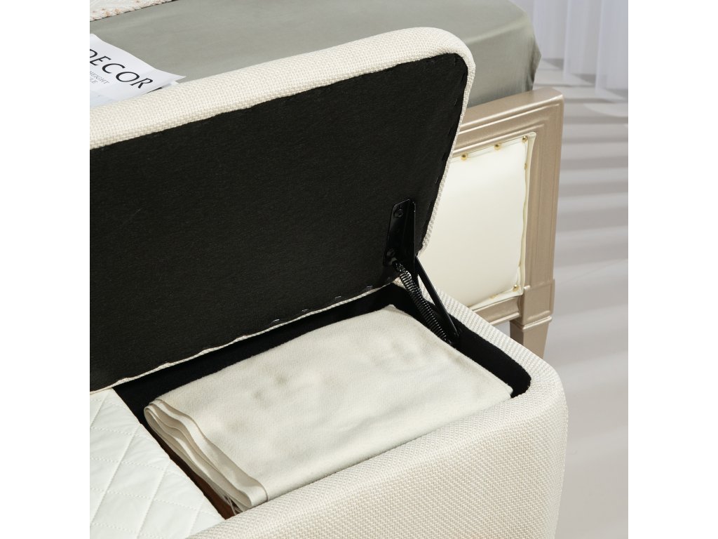 Skrytý úložný prostor: Tato úložná lavice nabízí pod sedákem prostor pro deky, polštáře nebo jiné předměty, které chcete uložit. Díky pružinovému mechanismu se panty snadno otevírají a zavírají a automaticky zůstávají v otevřené poloze.