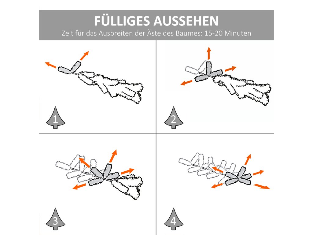 - Snadná montáž: Vánoční stromeček je vám doručen v několika částech, které jednoduše složíte a uzamknete ve stojanu. Po svátcích můžete stromeček stejně jednoduše rozložit a uložit do příštího roku, abyste ušetřili místo.