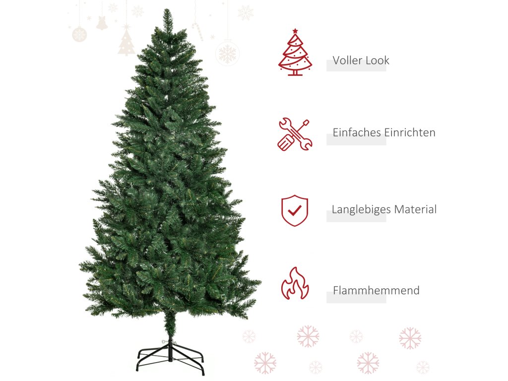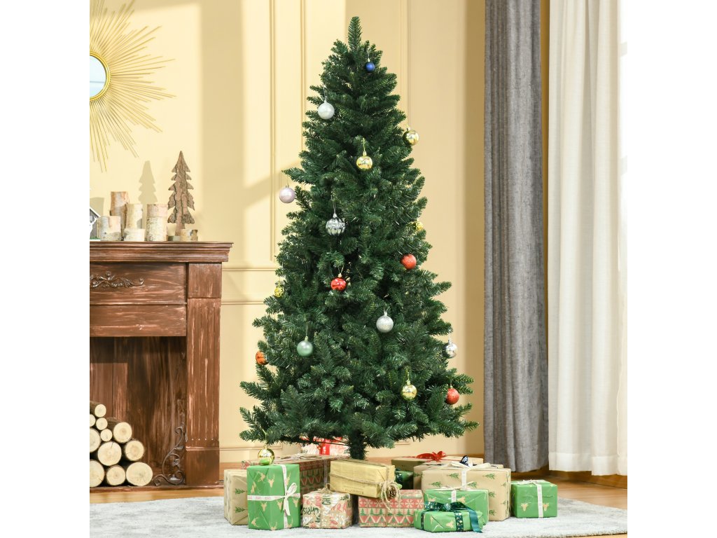 Umělý vánoční stromek HOMCOM 180 cm, borovice, umělá, se 724 větvemi, kovový stojan, pro interiér