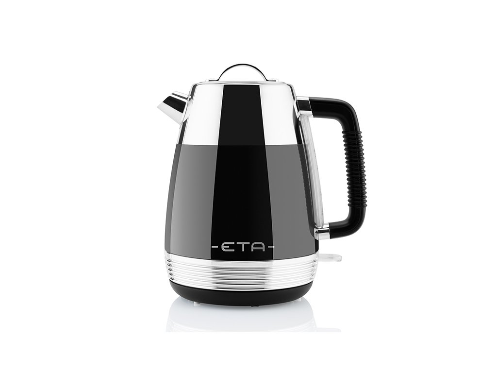 Černá nerezová konvice ETA Storio o objemu 1,7 l s vyjímatelným filtračním sítkem, světelnou signalizací a unikátním, ale moderním retro designem.