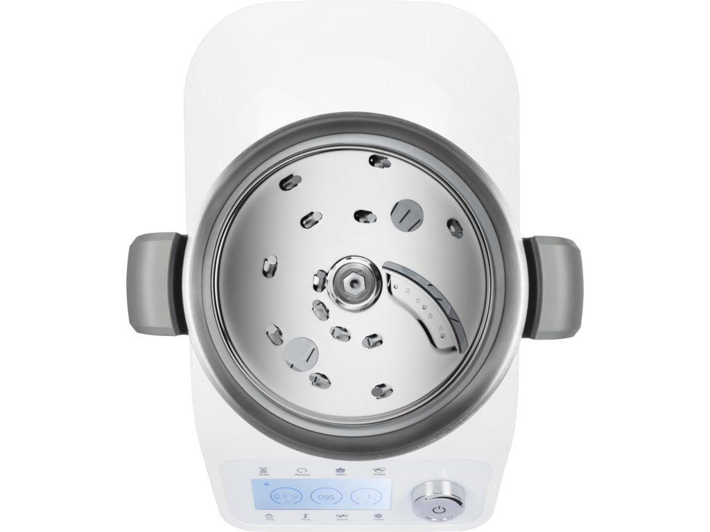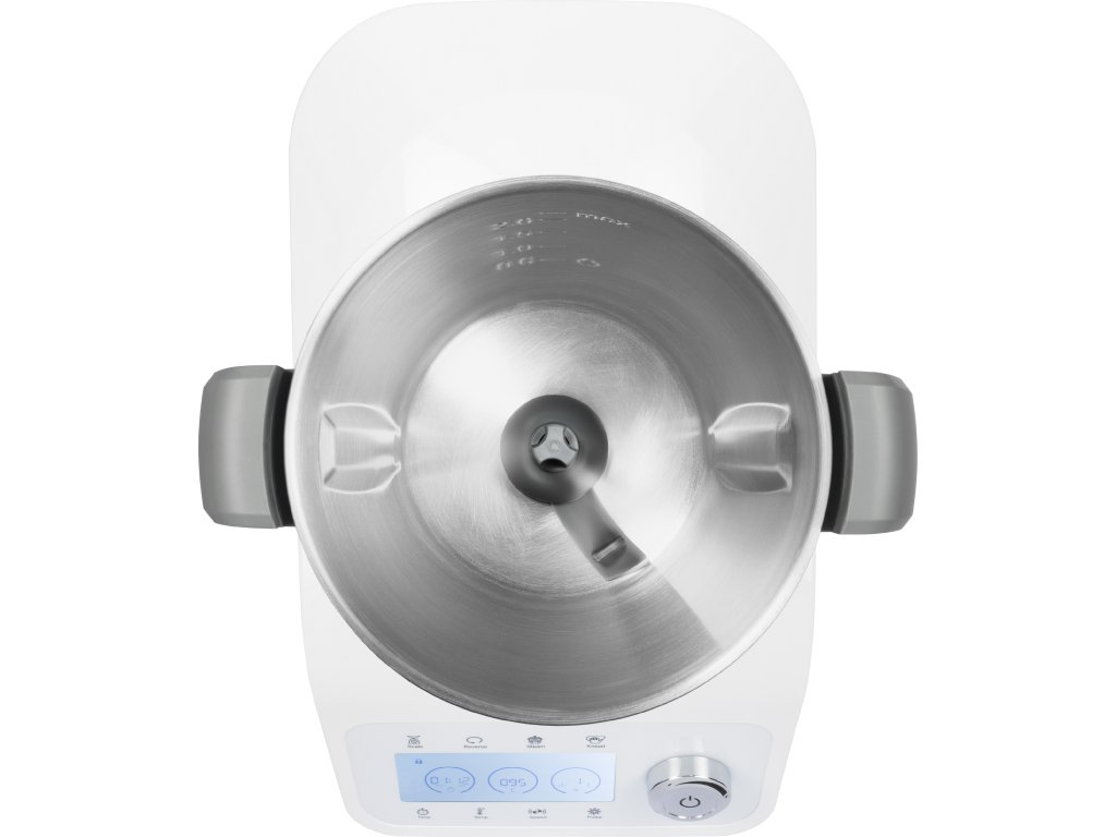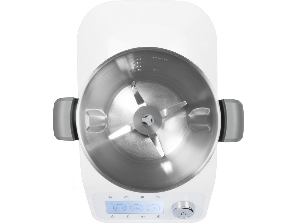 Nahradí pánev, klasický, parní i pomalý hrnec, mixér, šlehač, mlýnek, sekáček i krouhač. Intuitivní ovládání na velkém dotykovém displeji je doplněno otočným knoflíkem. Pohlídá si teplotu i čas vaření, sám si naváží, zamíchá a nikdy nepřipálí.
