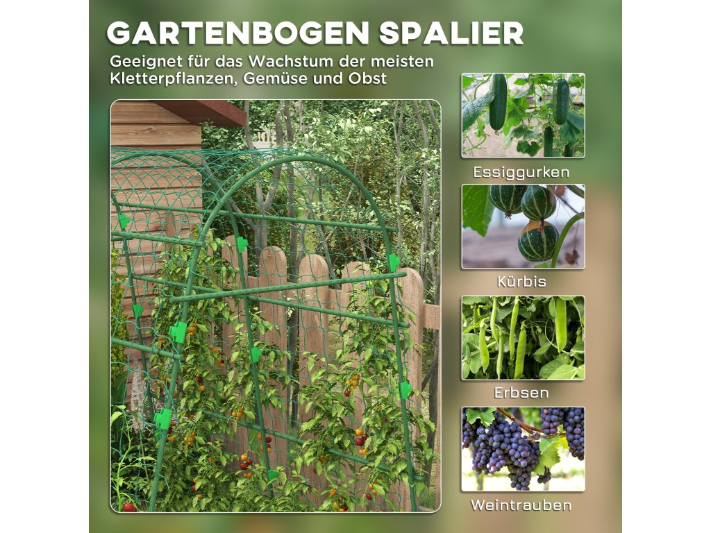Tento velký popínavý oblouk od společnosti Outsunny promění vaši zahradu v zelenou oázu! Využijte vertikální prostor, aby vaše rostliny mohly vzkvétat. Jedinečný design nejen efektivně využívá prostor, ale také dodá vaší zahradě okouzlující vzhled. Ideální společník pro pěstování rajčat, bobulovin, hrášku, vinné révy, okrasných popínavých rostlin a mnoha dalších.