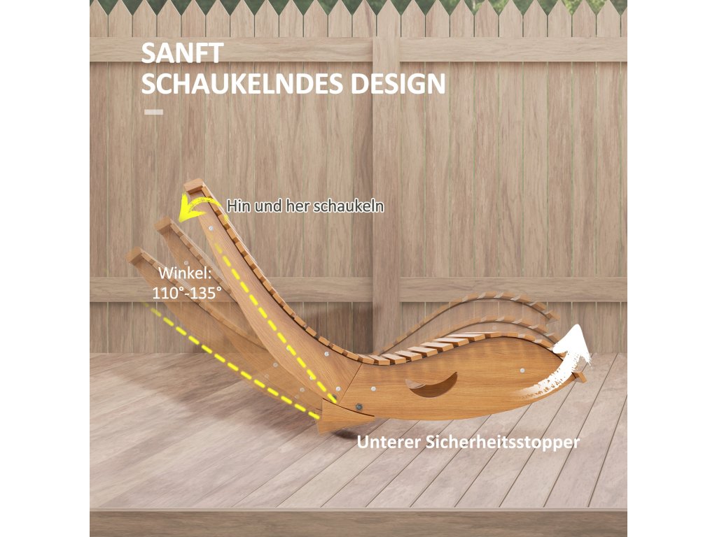 Venkovní houpací křeslo Outsunny, vysoké opěradlo, nastavitelný podstavec, borovicové dřevo, 130 x 60 x 60 cm, světle hnědá barva