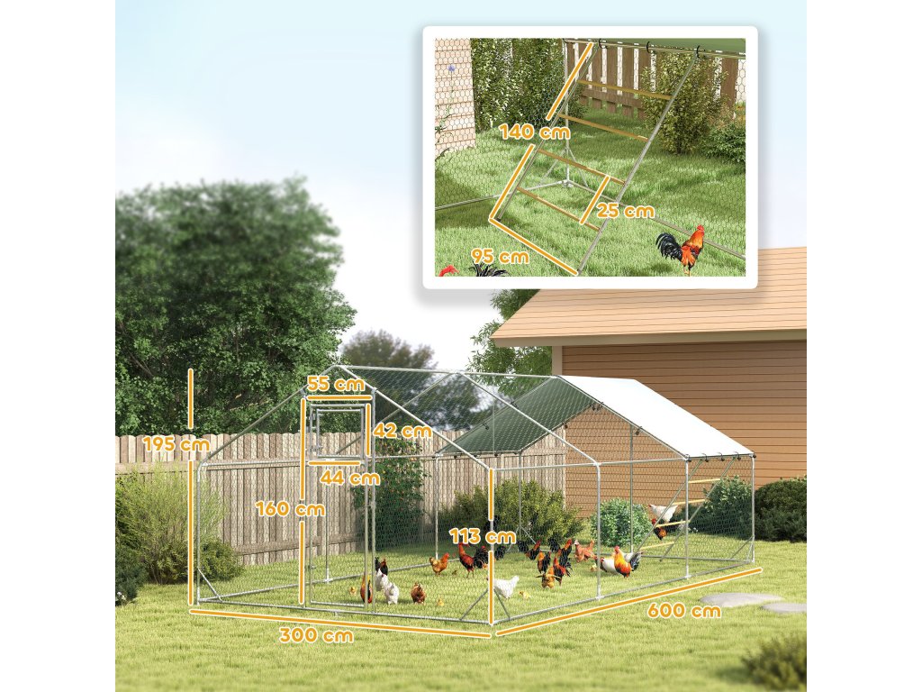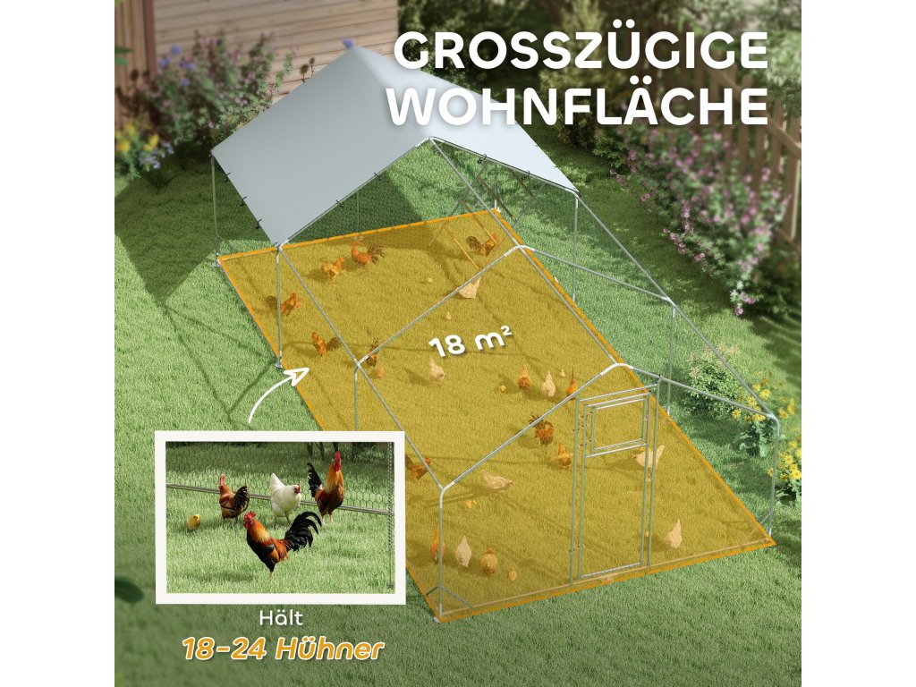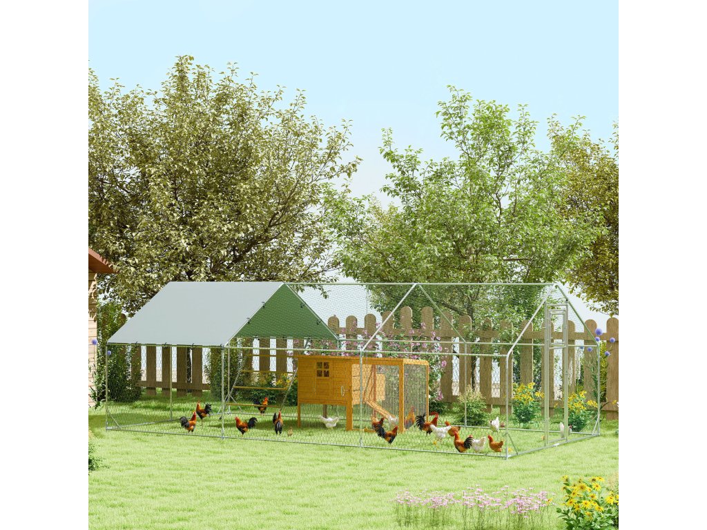 Předělejte svou zahradu pomocí výběhu pro kuřata, prostorného chléva o velikosti 18 m² pro 18–24 kuřat. Je vybaven galvanizovanou ocelí a tkaninou Oxford odolnou proti UV záření a zaručuje bezpečné a pohodlné místo pro vaše opeřené přátele. Inovativní dvířka výběhu pro volný výběh s vestavěným přístupem ke krmivu usnadňují péči o kuřata a design nabízí dostatek prostoru pro hraní, pobíhání a odpočinek.