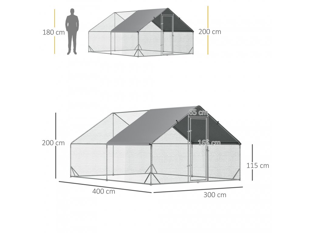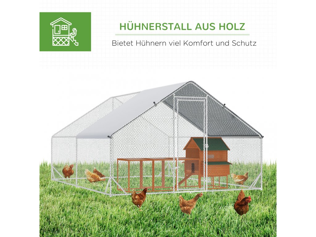 Kurník PawHut je ideální pro zajištění bezpečného výběhu vašich kuřat. Robustní galvanizované kovové rámy, šestihranné drátěné stěny a odolné kryty odolné proti povětrnostním vlivům poskytují vašim kuřatům bezpečné místo, kde se mohou škrábat, běhat a odpočívat.