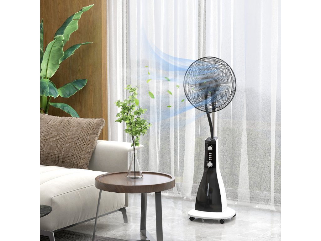 Zažijte svěží vánek s vodou chlazeným stojanovým ventilátorem HOMCOM. Ať už je používáte společně nebo samostatně, 3 rychlostní stupně ventilátoru a nastavitelné úrovně mlhy zajišťují individuální pohodlí. Díky rozsahu otáčení 75° a náklonu 15° vám ventilátor umožní v horkých dnech zcela relaxovat. Velká nádrž na mlhu poskytuje až 13 hodin nepřetržitého požitku z mlhy, což z něj činí osvěžujícího společníka v interiéru.