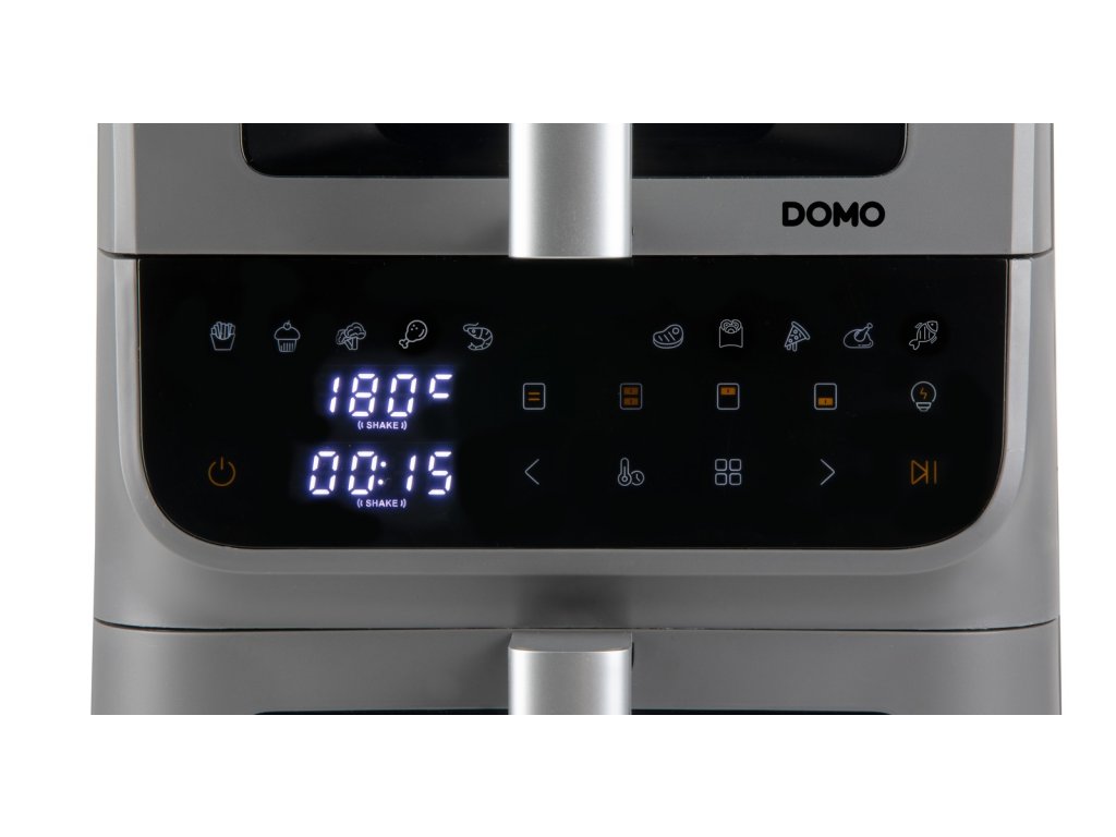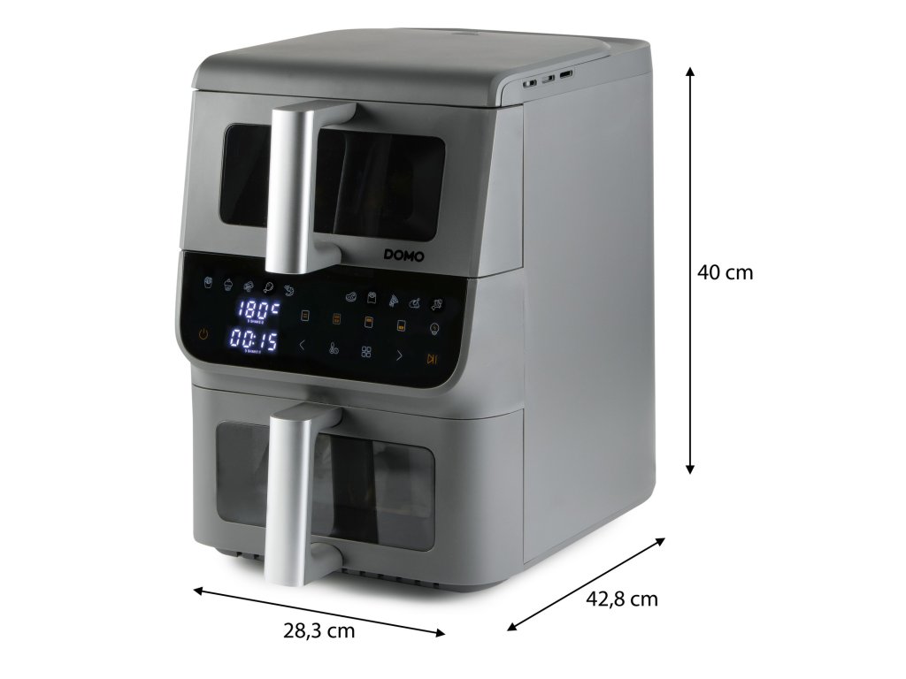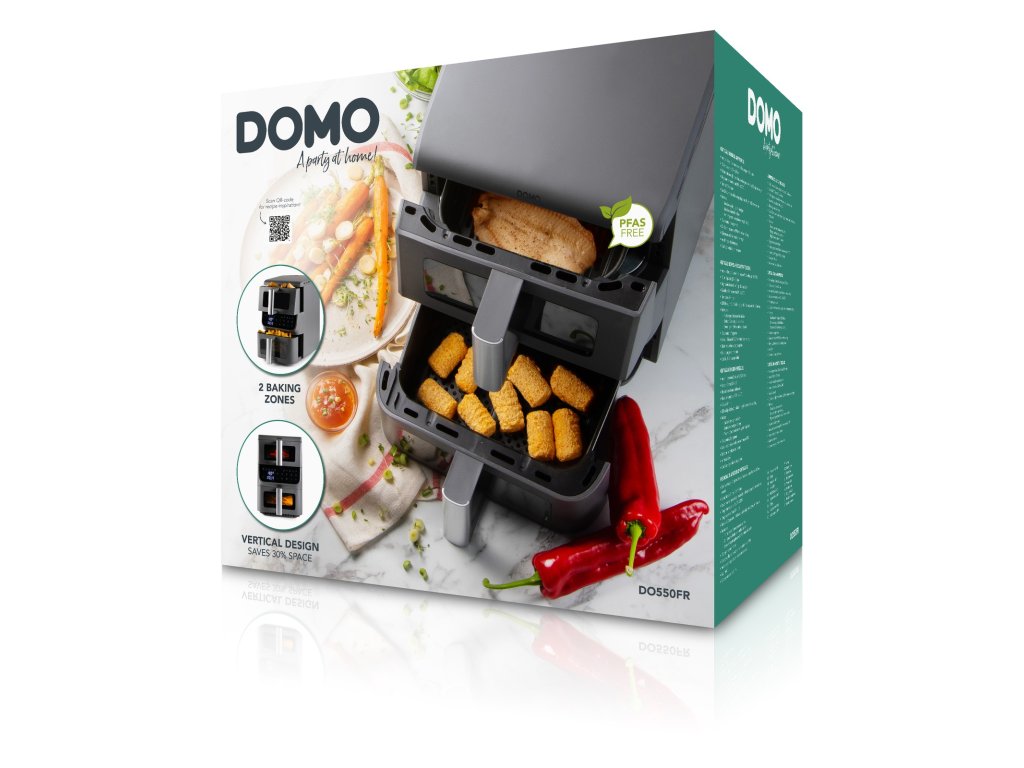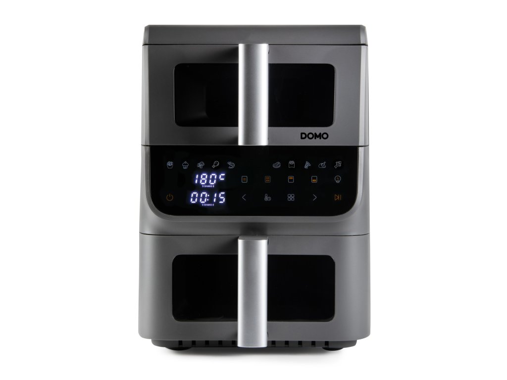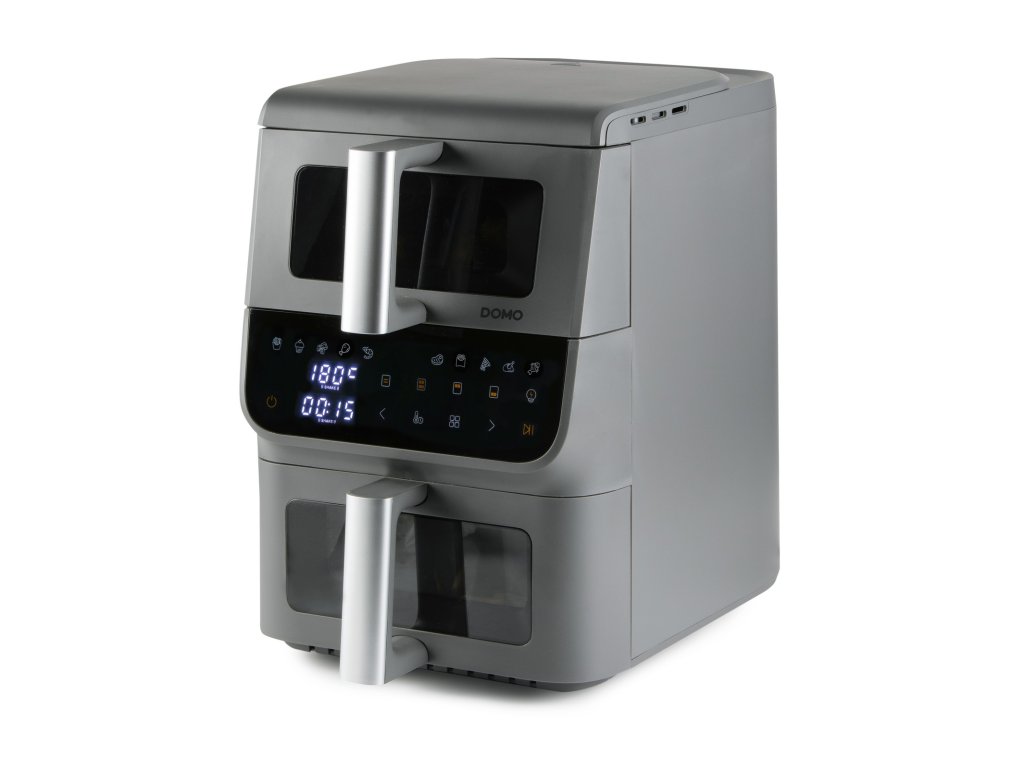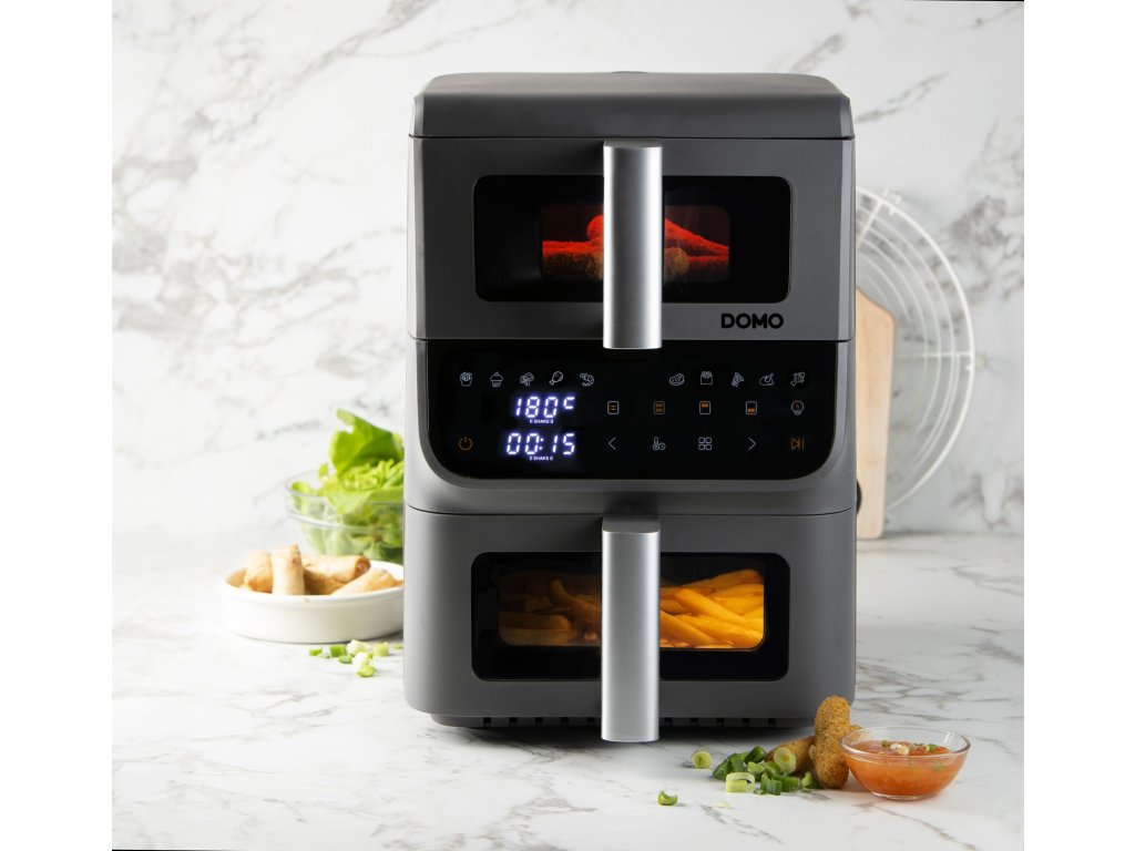 Vertikální dvojitá horkovzdušná fritéza 3,5+6,5 l - DOMO DO550FR, 2 500 W, 2 samostatné zóny, celková kapacita 10 litrů, s průzory