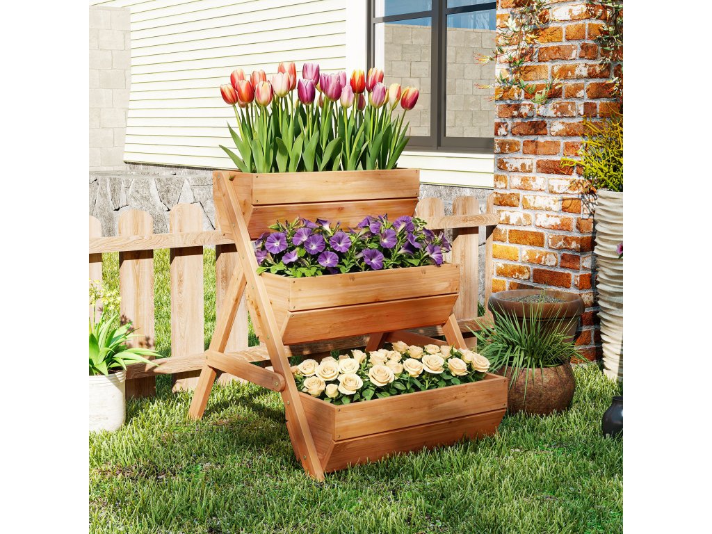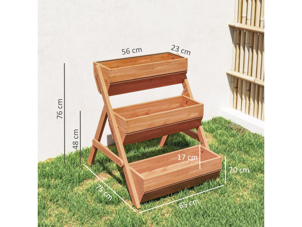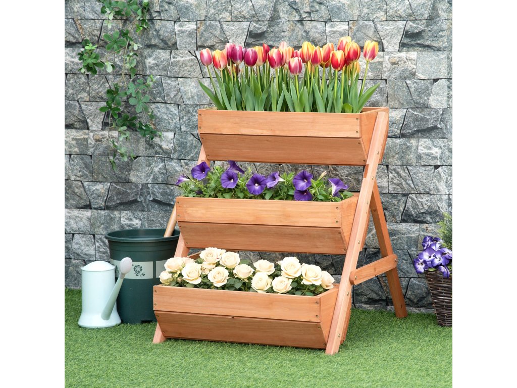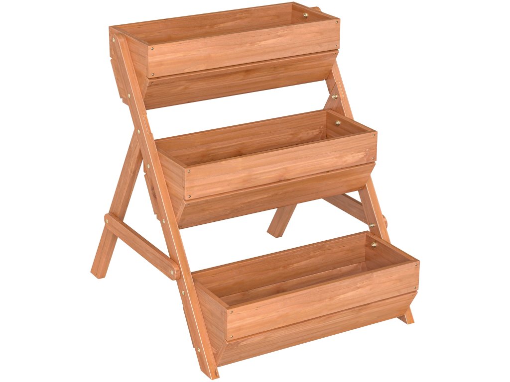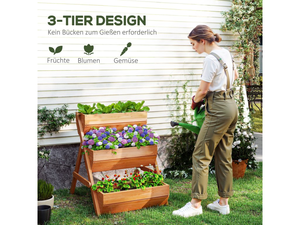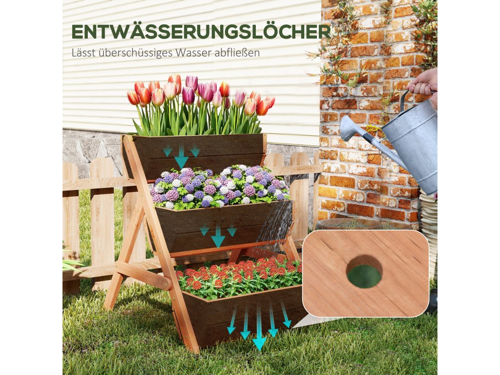 Vertikální záhon Outsunny se 3 vrstvami, dřevěný květináč se 3 truhlíky, drenážní otvory, hnědý