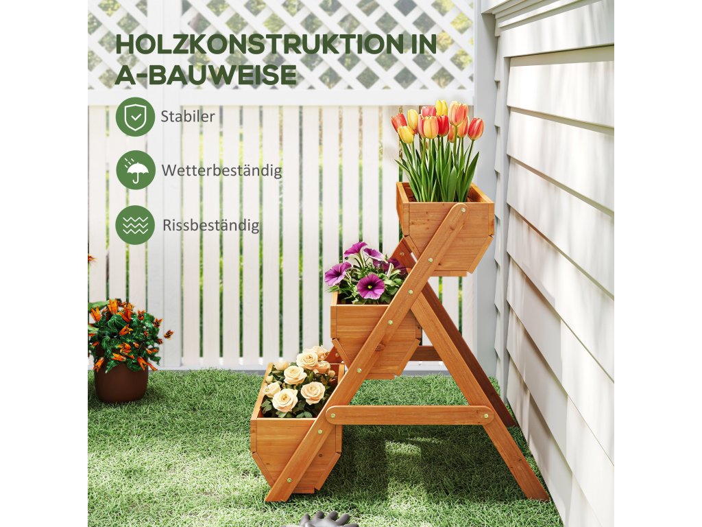 Dřevěná konstrukce: Vysoce kvalitní, robustní dřevěná konstrukce s ochranným nátěrem pro dlouhou životnost. Robustní nohy ve tvaru „A“ dřevěného vyvýšeného záhonu zajišťují stabilitu, zatímco vyvýšené květináče nabízejí dodatečnou ochranu před hmyzem a škůdci.