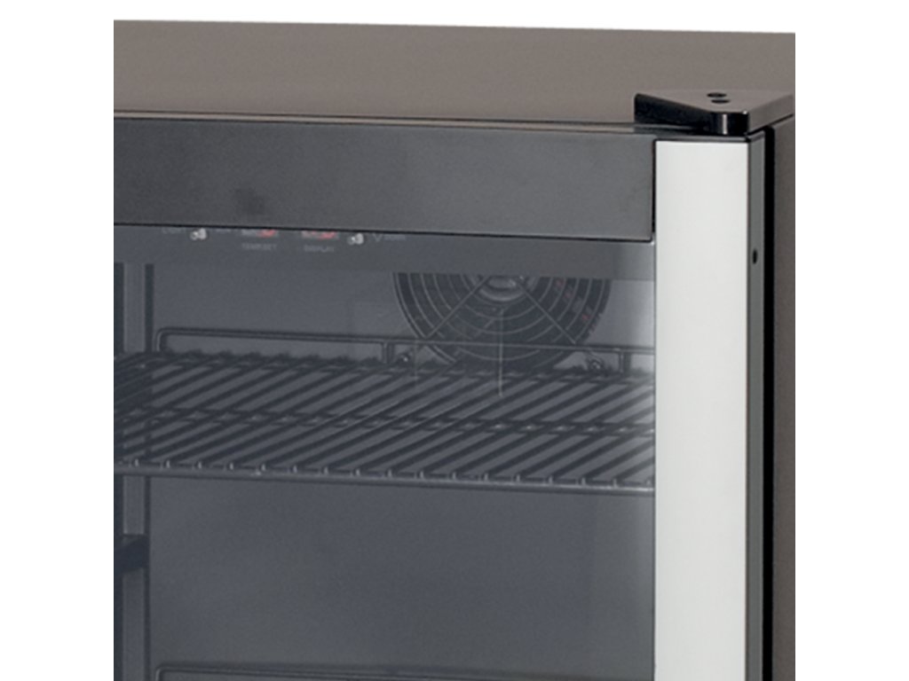 Tato jednodveřová chladicí skříň s prosklenými dveřmi a ventilovaným chlazením je ideální pro prezentaci chlazeného zboží v prodejnách a obchodech. Skříň má tři výškově nastavitelné rošty, takže se snadno přizpůsobí různým typům potravin. Díky proskleným dveřím a ventilovanému chlazení je zajištěna optimální viditelnost a proudění vzduchu, což pomáhá udržovat konstantní teplotu v celé skříni. S černým interiérem a exteriérem je tato skříň moderní a elegantní, což ji činí vhodnou nejen pro gastronomické provozy, ale také pro obchody s potravinami a nápoji.ventilované chlazení, automatické odtávání, digitální termostat, 3 výškově nastavitelné rošty, snadno vyměnitelné těsnění, lze měnit otevírání dveří