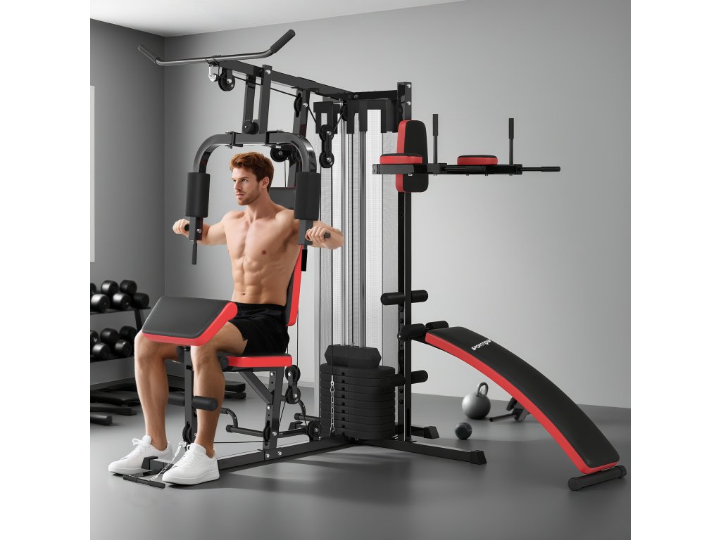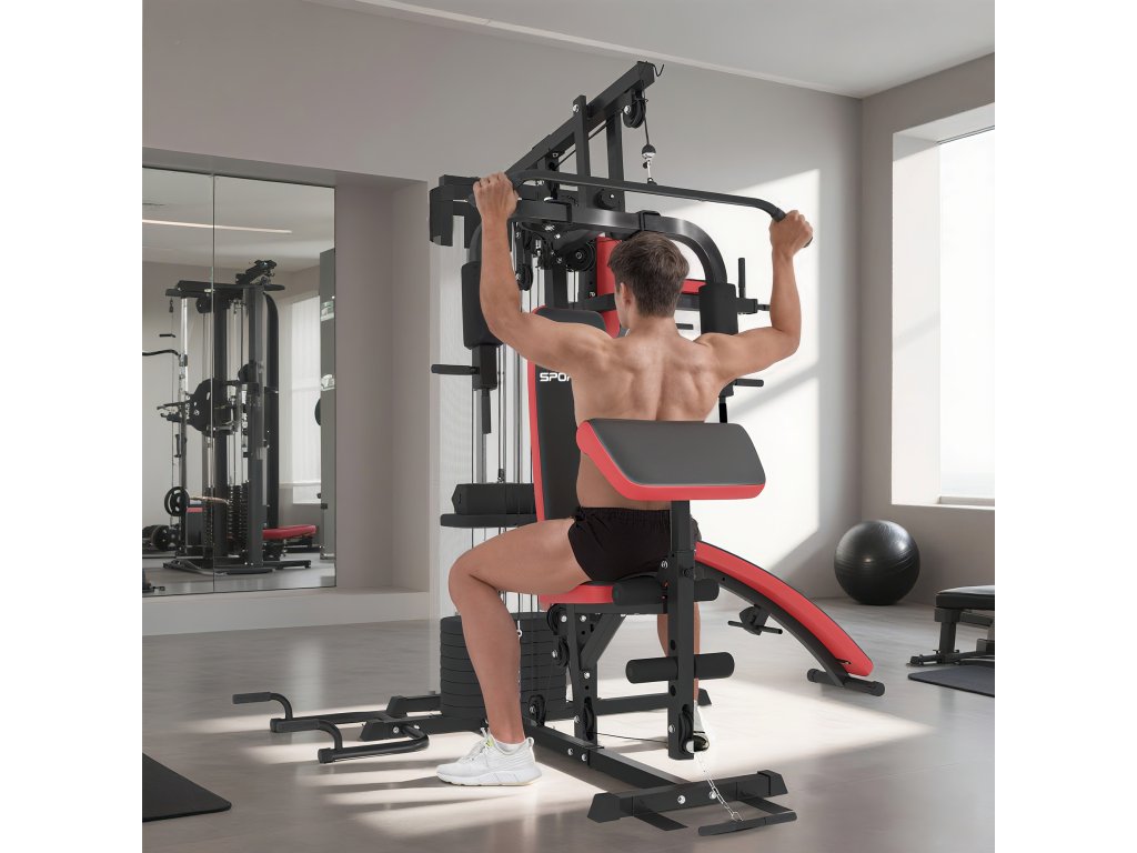 Trénink celého těla: S 65kg zátěžovými stohy, které lze individuálně přizpůsobit vaší úrovni. Procvičte si nohy, paže, hrudník, ramena, záda a hýždě. Kompaktní tréninkové zařízení, ideální pro váš domov.