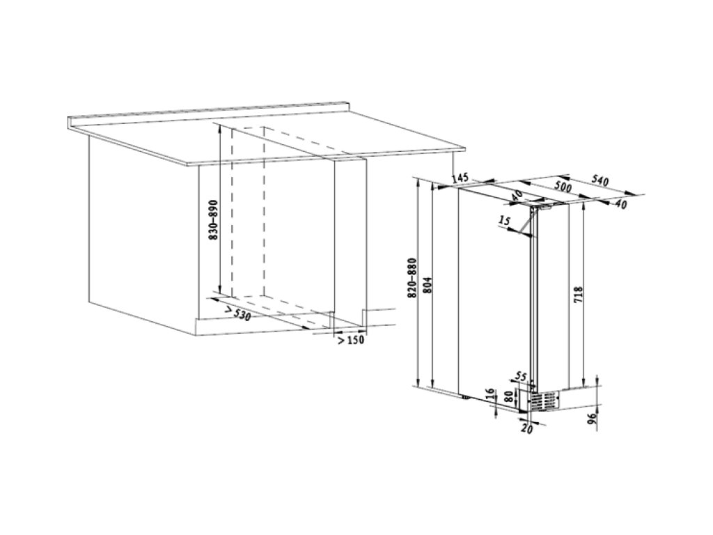 - Volně stojící nebo vestavná pod pracovní desku jednozónová vinotéka