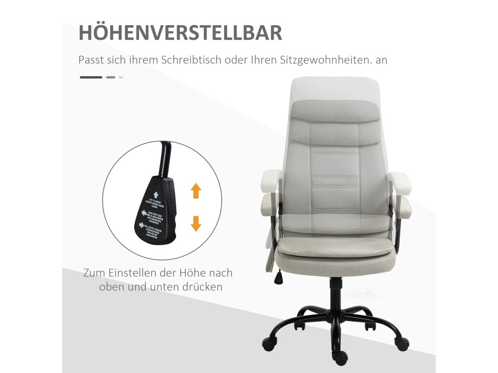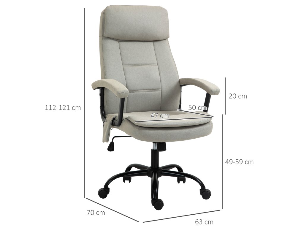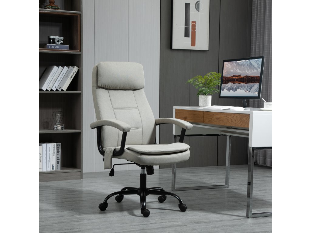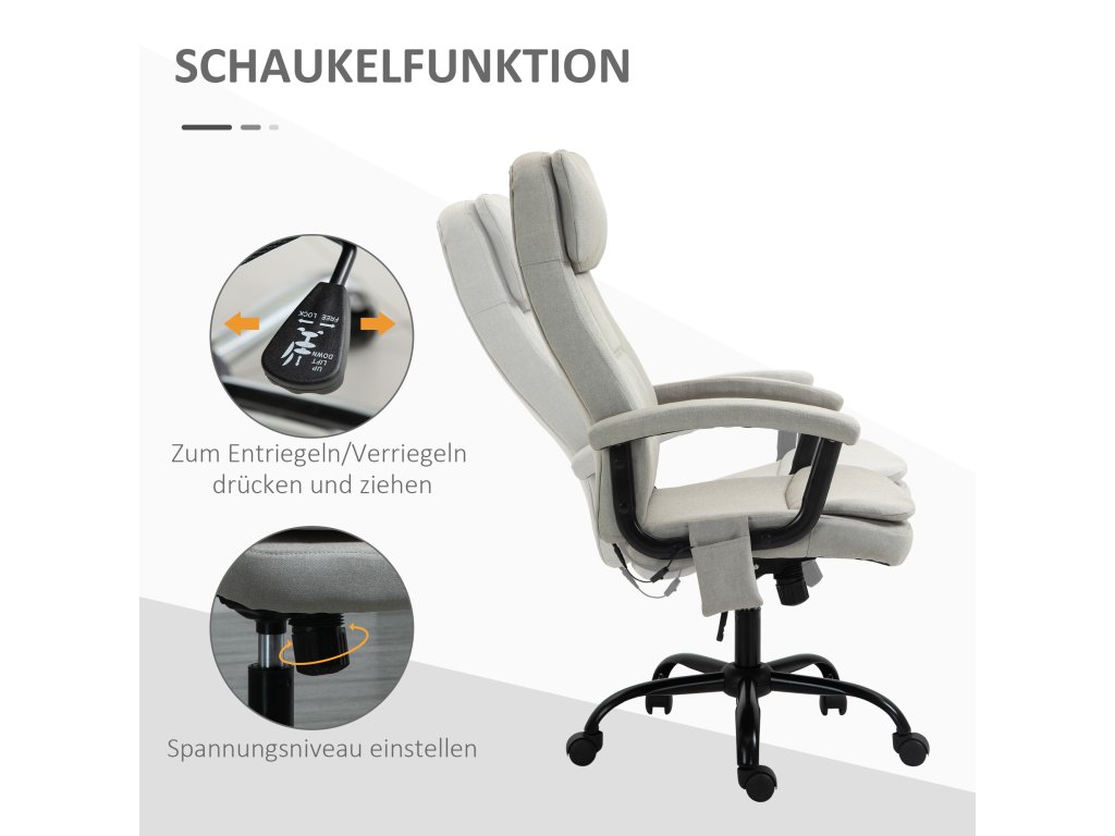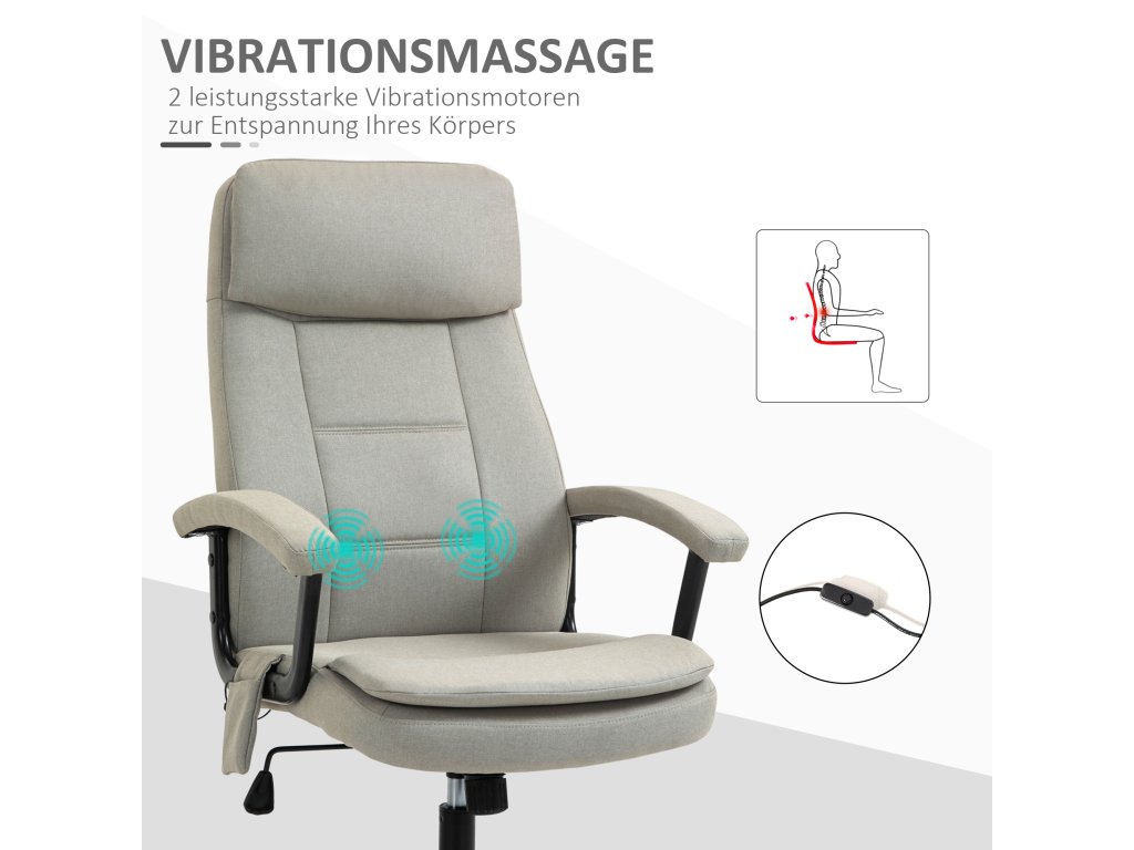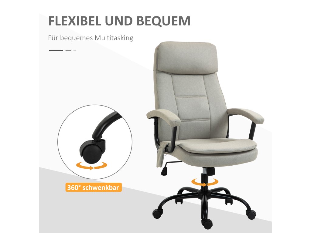 Vinsetto kancelářská židle masážní výškově nastavitelná manažerská židle herní židle s masážní funkcí, ergonomická otočná židle masážní křeslo masáž bederní páteře lněný pocit Béžová 63 x 70 x 112-121 cm