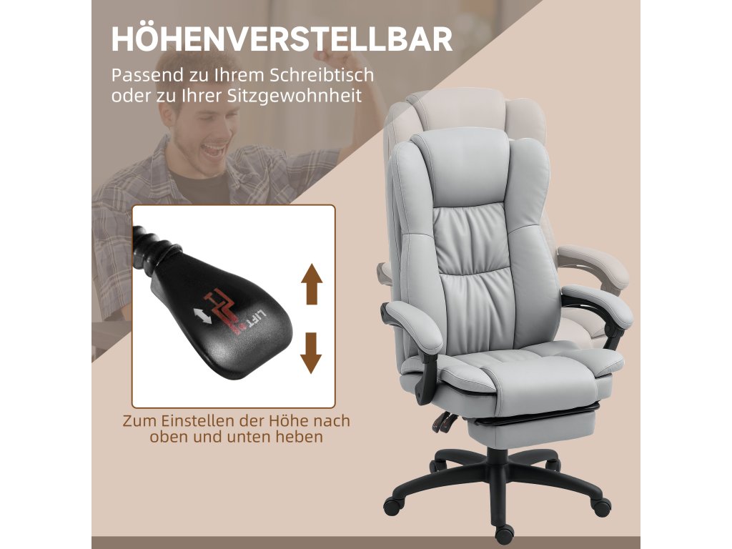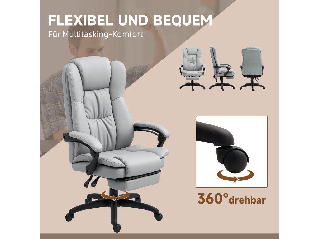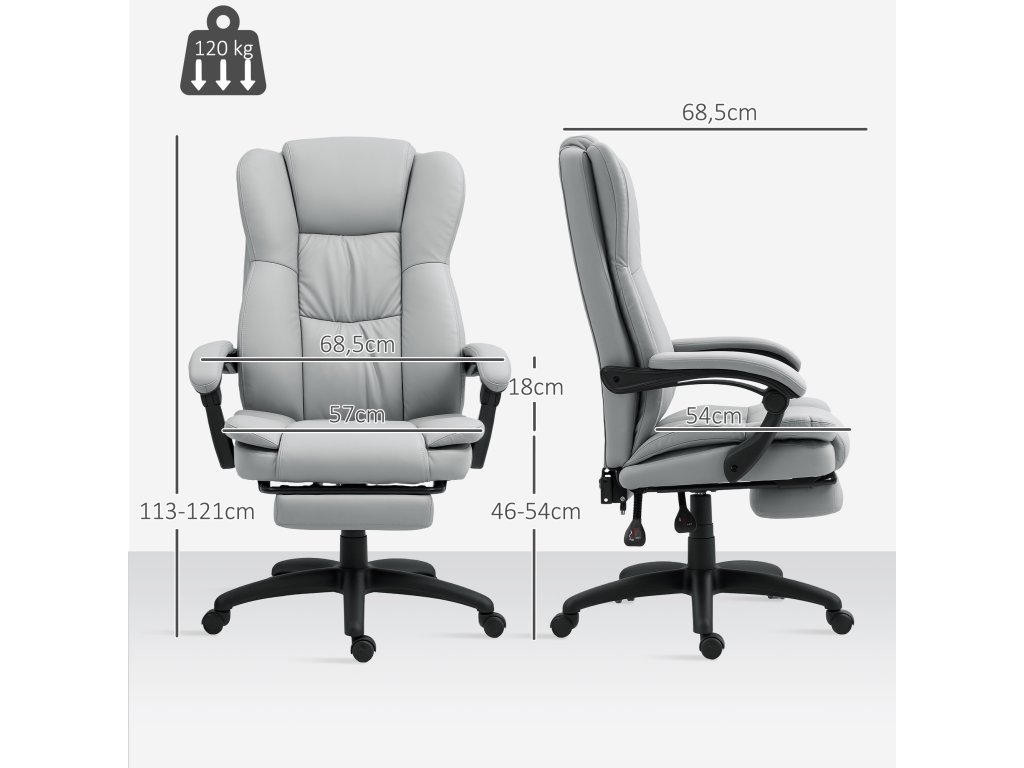 Vinsetto Nastavitelná otočná židle s podnožkou, opěrkou hlavy, masážní funkcí, imitace kůže, 68,5x68,5x113-121 cm