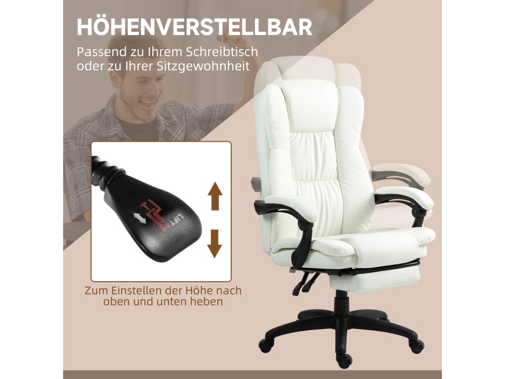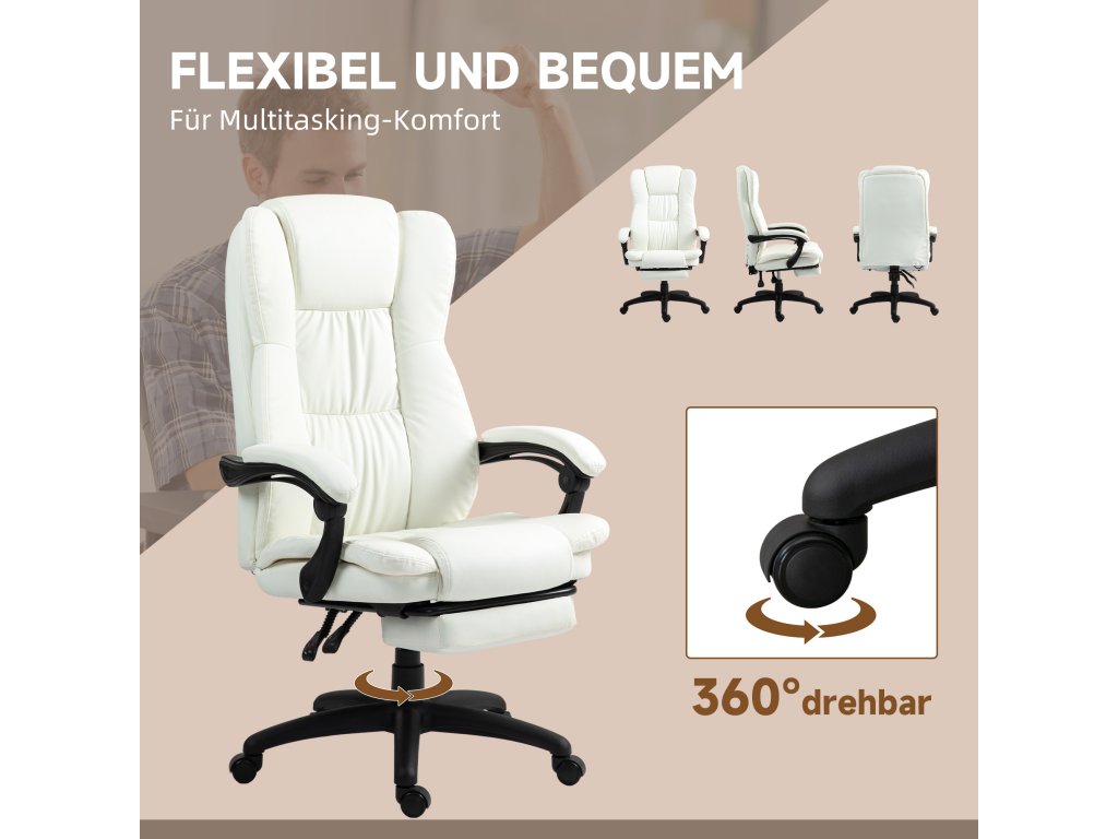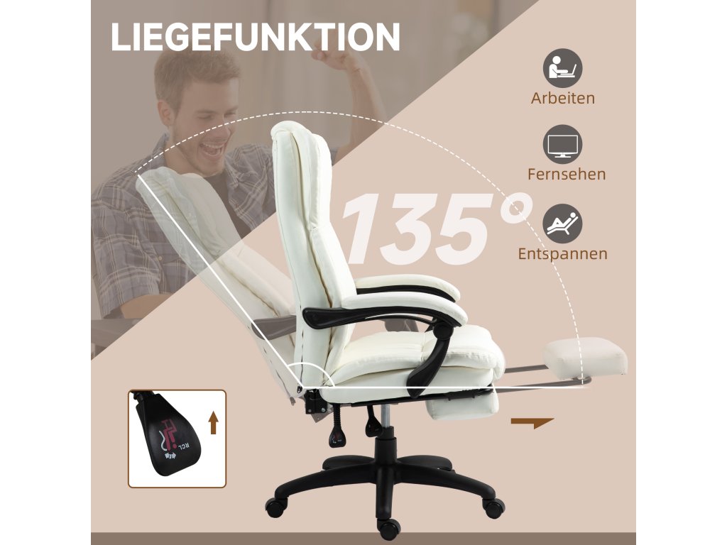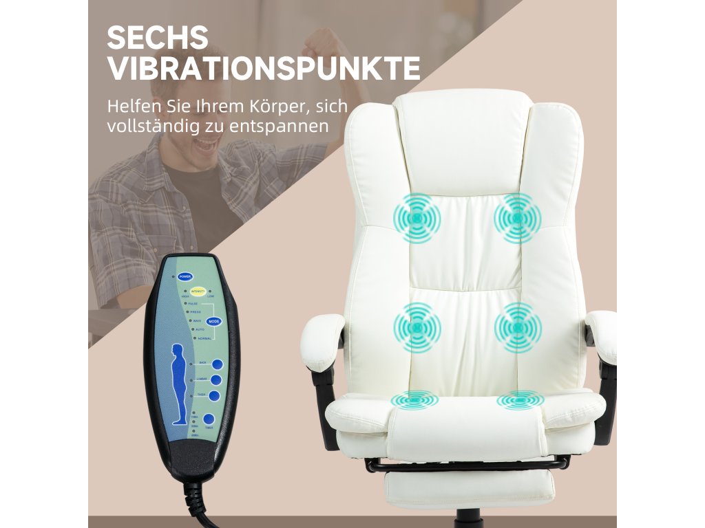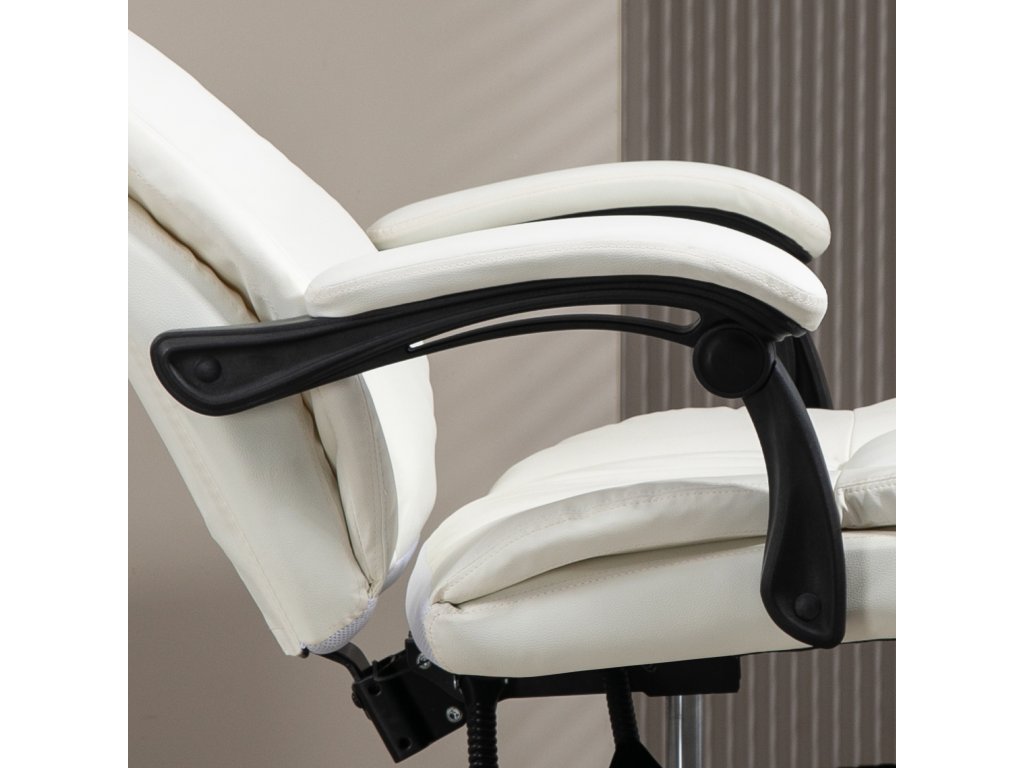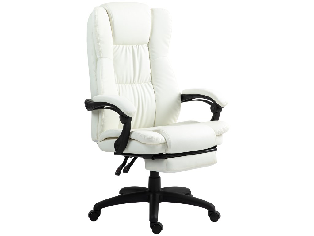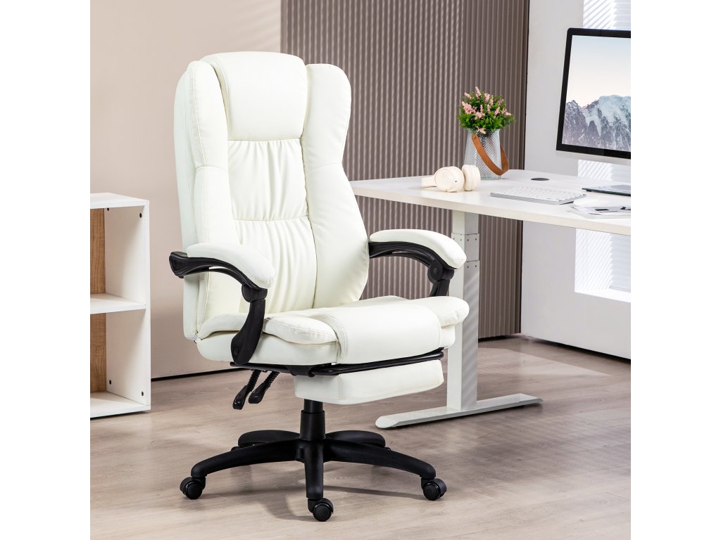 Vinsetto Nastavitelná otočná židle s podnožkou, opěrkou hlavy, masážní funkcí, imitace kůže, 68,5x68,5x113-121cm, krémově bílá