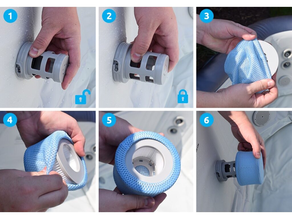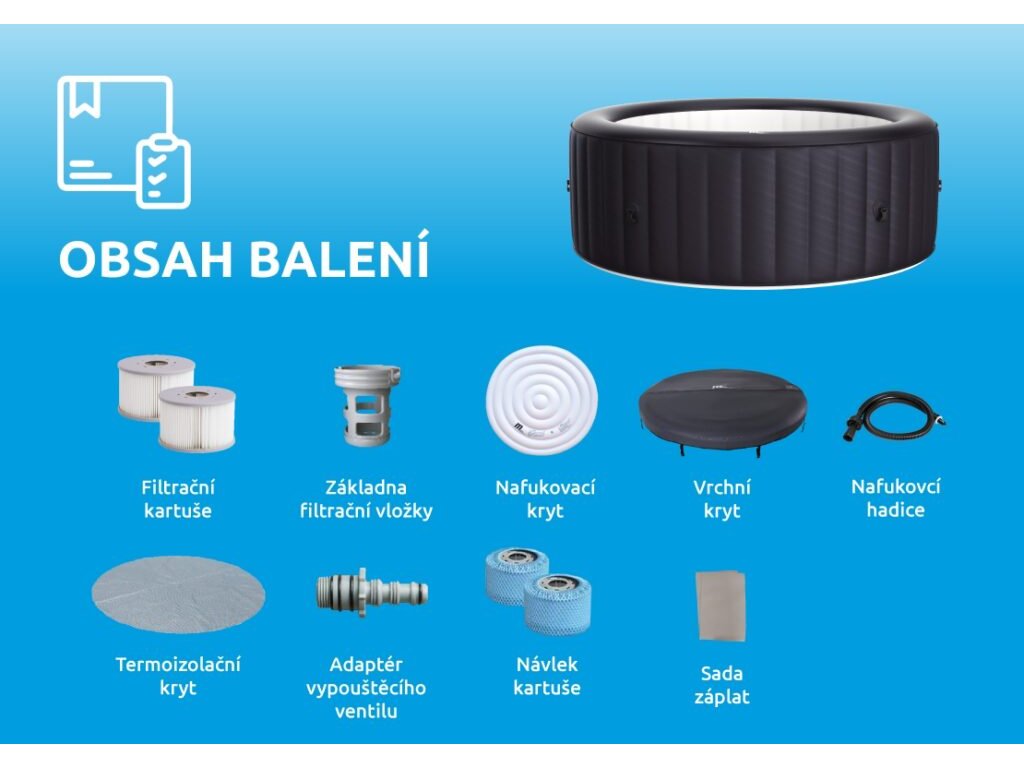 - 2x filtrační vložka (kartuše) s potahem. Pro fungování vířivky mohou být použity kartuše s potahem i bez potahu.