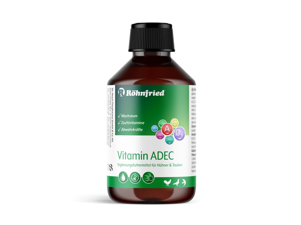 Vitamín ADEC je určen pro kuřata, nosnice a holuby. Pomáhá doplnit důležité vitamíny v náročných obdobích – při růstu, chovu nebo při změně ročních období.