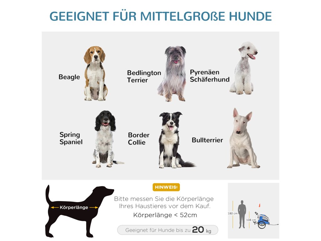Pohodlný přístup: Dva různé vchody nabízejí vašemu mazlíčkovi pohodlný způsob, jak se dostat do přívěsu. Nosnost: 30 kg. Vhodné pro středně velké psy s délkou těla do 53 cm a hmotností do 20 kg.
