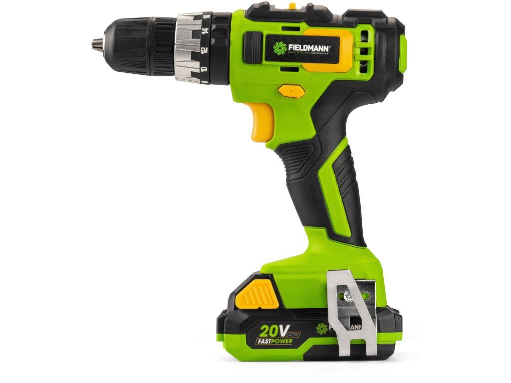 Jednoduše ovladatelná akumulátorová vrtačka FIELDMANN FDUV 70115-A, která díky funkci příklepu zvládne i vrtání do tvrdých materiálů. Právě díky svému univerzálnímu využití se stává často využívaným společníkem každého hobby kutila nebo domácího opraváře.Vrtačka je poháněna li-Ionovou baterií, jejíž celkové využití hlídá elektronická řídící jednotka a v kombinaci s maximálním kroutícím momentem 35 N.m. poskytuje silný výkon potřebný pro rychlé vrtání či šroubování.Nástroj je zároveň součástí rodiny FASTPOWER 20 V – řady náčiní s kompatibilními bateriemi, které umožňují využívání akumulátorů z ostatních produktů tohoto programu. Nejen, že je tedy vrtačka zcela bez napájecího kabelu, šetří i váš čas, protože čekání na nabití baterie už je hudbou minulosti. Jednoduše vezmete baterii z jiného zařízení (pila, bruska, sekačka atp.) a pokračujete v započaté práci. Díky ergonomické rukojeti padne náčiní dobře do ruky a zabudované LED světlo je už jen příjemným bonusem. Po skončení práce můžete nářadí uložit do praktického plastového kufříku, čímž si ulehčíte skladování a udržíte v dílně vzorný pořádek.