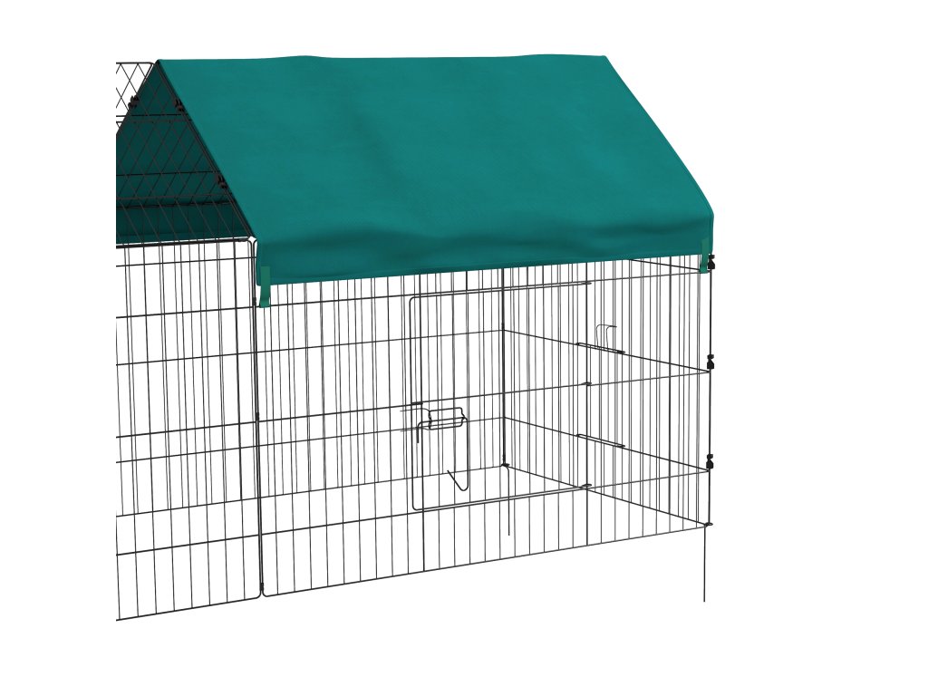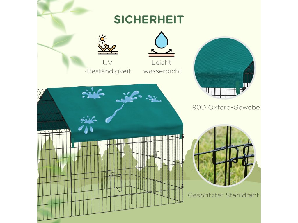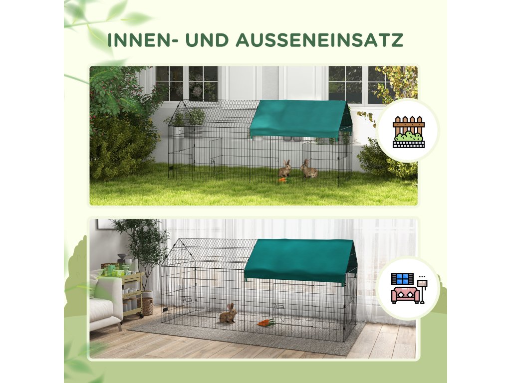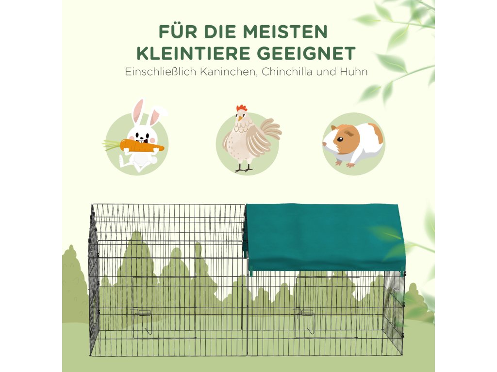 Výběh pro malá zvířata PawHut se střechou, 4 dveře, odolný proti povětrnostním vlivům, ocel/polyester, 220x85x103cm, zelená/černá