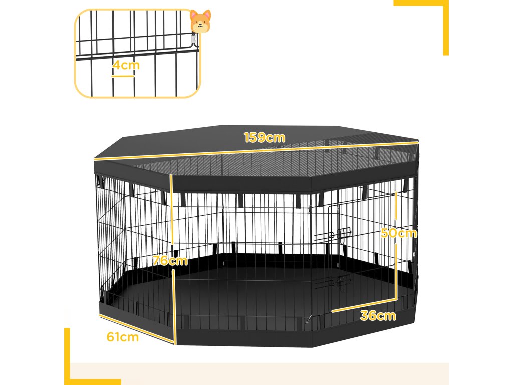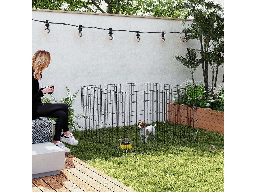 Výběh pro štěňata PawHut, výška 76 cm/cca 2,5 m², 8 panelů, podlahová plachta, kombinovaná střešní plachta