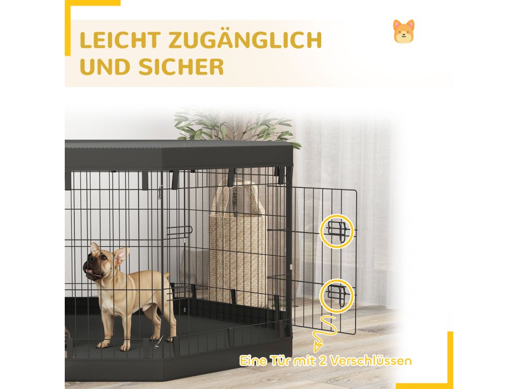 - ✔ Dvířka ohrádky pro štěňata mají dvě západky pro zajištění štěňat a umožňují snadný přístup