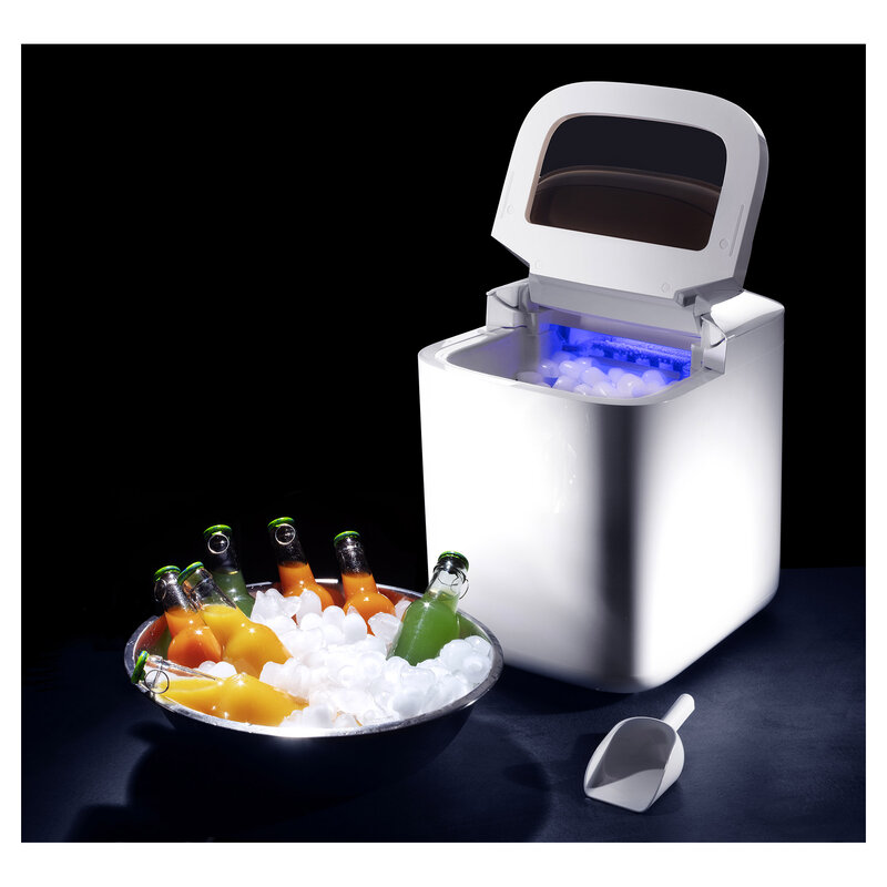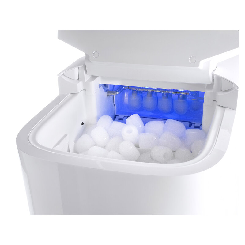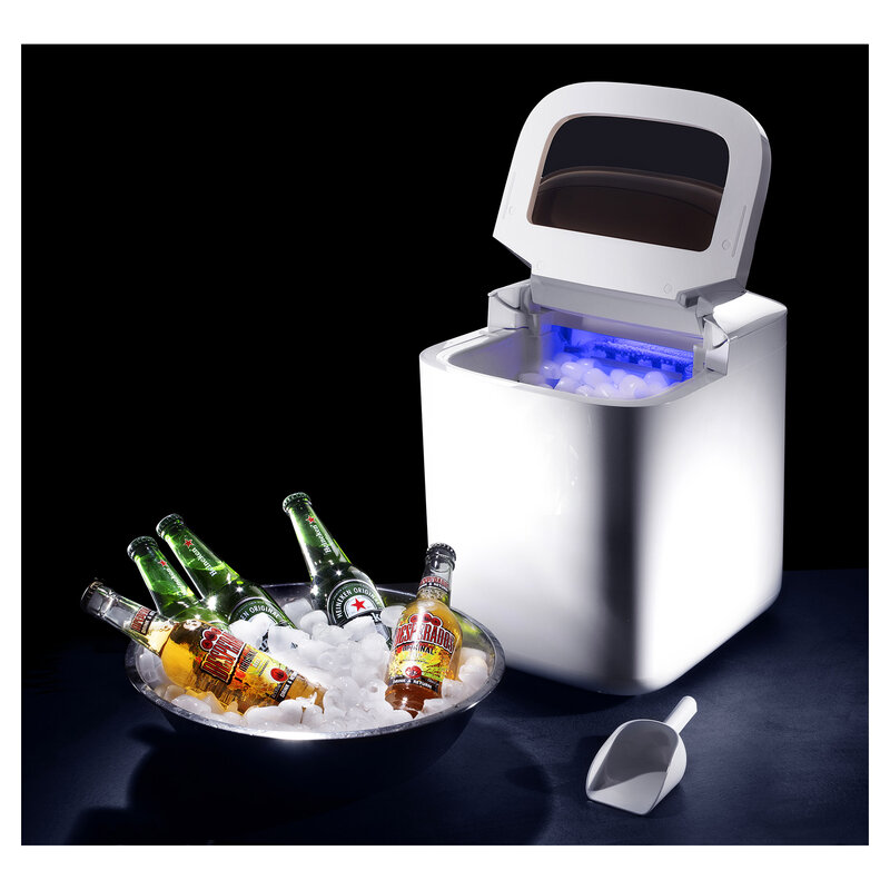 Výrobník zvládne vyrobit až 15 kg ledu za den a umožňuje výběr ze dvou velikostí. V designu skryté dotykové ovládání pro elegantní vzhled a praktické funkce jako indikátor plného košíku na led nebo automatické čištění posunují výrobník ledu mezi stylové mašinky, bez kterých se v létě neobejdete!Přednosti výrobníku ledu