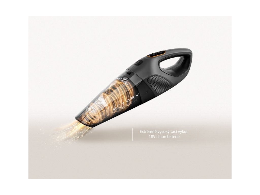 Ruční vysavač nové generace s elektrickým rotačním kartáčem, vysokým sacím výkonem a 18 V Li-ion akumulátorem pro výdrž až 30 minut na jedno nabití.