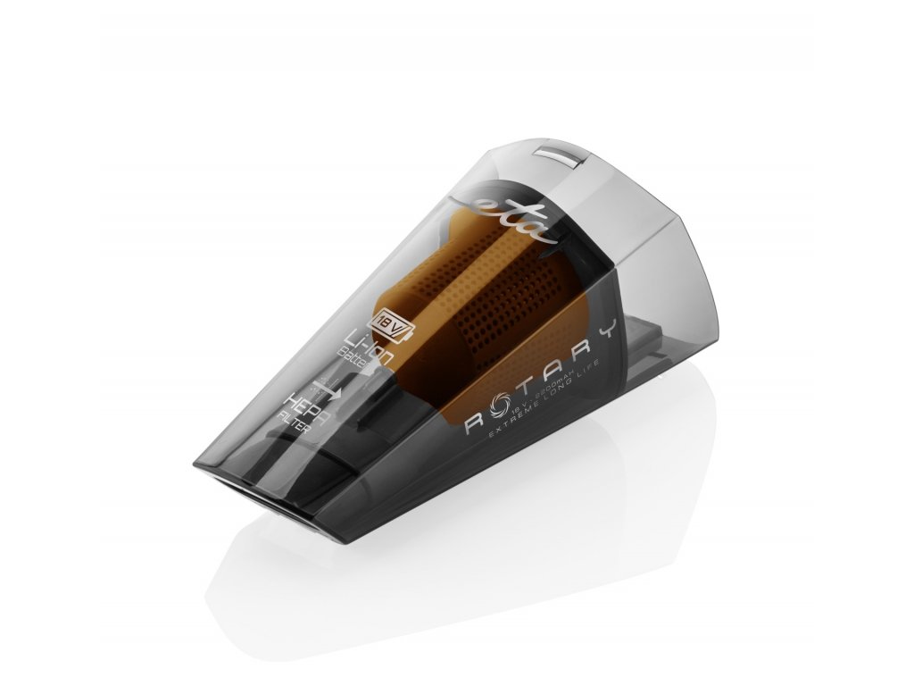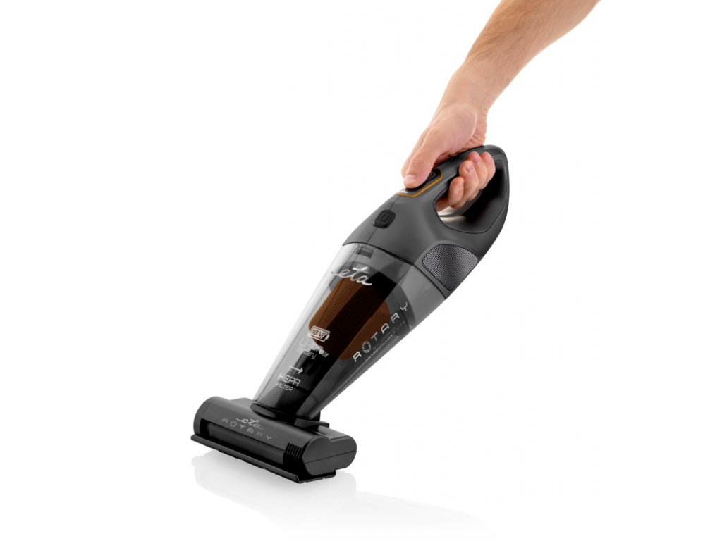 Ruční vysavač nové generace ETA Rotary vás nadchne silným sacím výkonem i elektrickým rotačním kartáčem, který zajistí ještě efektivnější sběr a vyčesání nečistot. O jejich filtraci se následně postará účinný HEPA filtr.