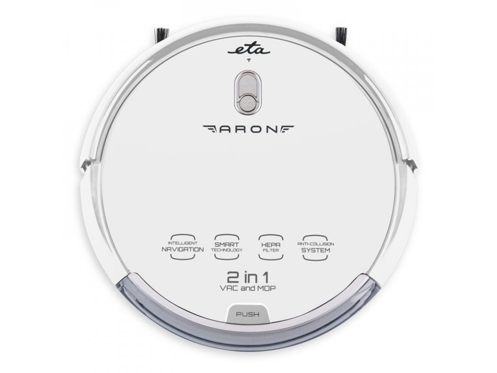 Robotický vysavač ETA Aron 2 v 1 se smart aplikací je praktickým úklidovým pomocníkem, který vysává i mopuje za vás. Uvnitř skrývá moderní digitální motor s extra dlouhou životností. Vysoký sací výkon je navíc doprovázen trojnásobnou filtrací s HEPA filtrem, který zachytí i ty nejmenší částice prachu a nečistot.