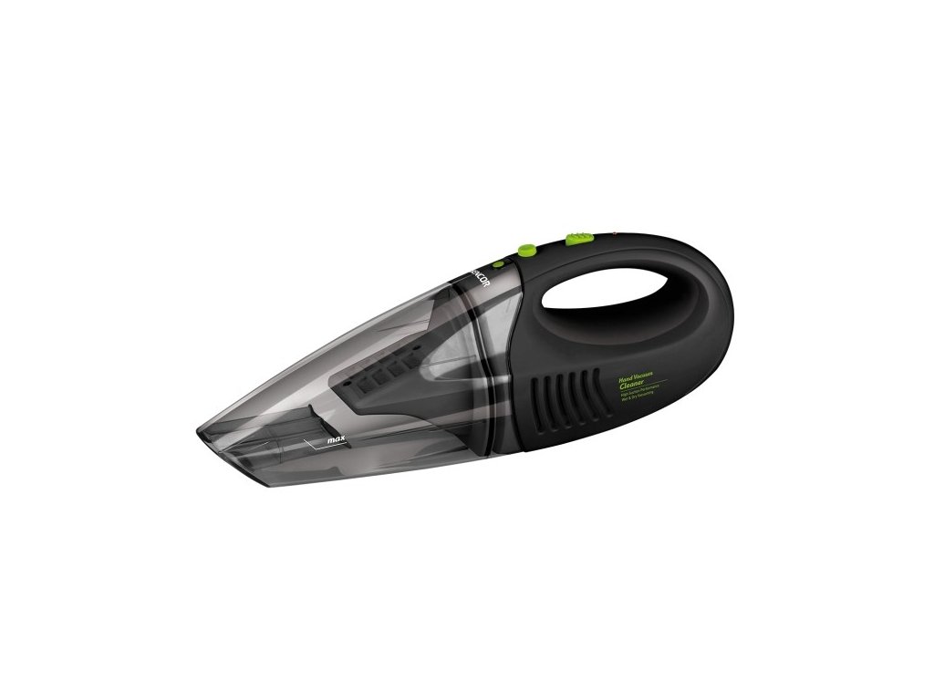 Akumulátorový ruční vysavač, doba provozu 15 min, suché i mokré vysávání, omyvatelný filtr, Dodávané příslušenství: kartáčová hubice, štěrbinová hubice, nástavec pro vysávání mokrých nečistot, Dobíjecí základna s adaptérem (možnost připevnění na stěnu), NiMH baterie 7,2 V (6x 1400 mAh), Hlučnost 80 dB, Příkon 45 W