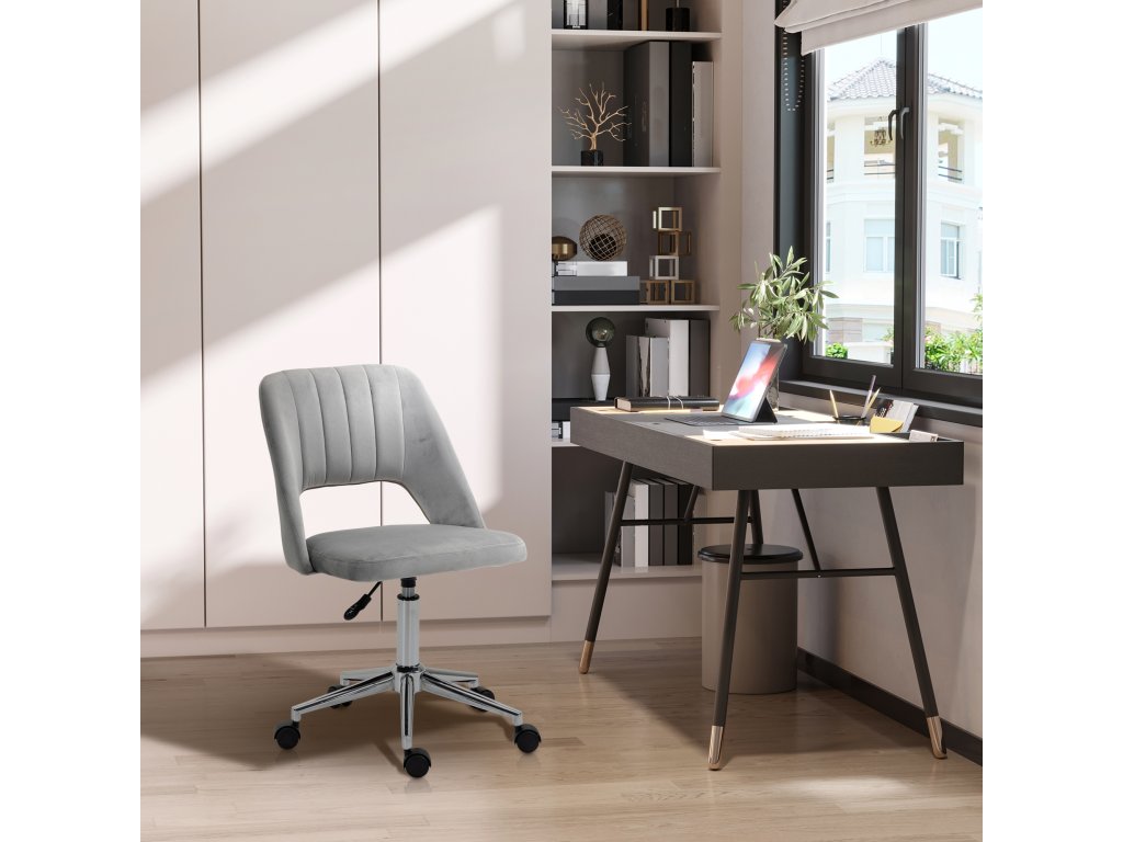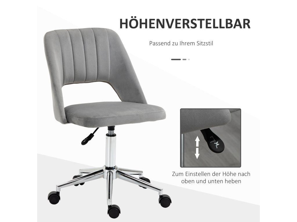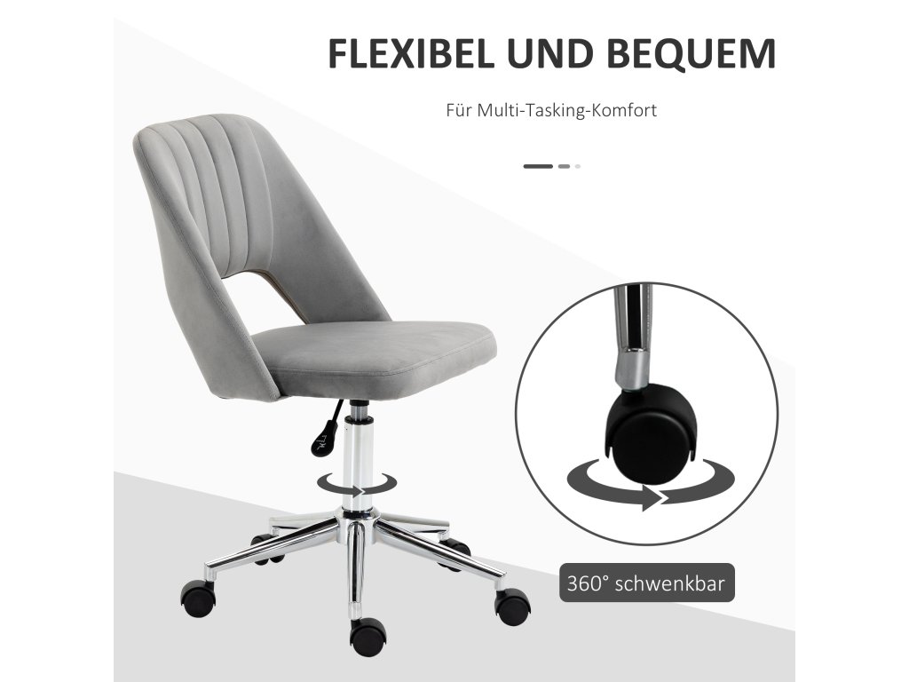 Výškově nastavitelná kancelářská židle Vinsetto s kolečky, otočná o 360°, tvar mušle, pěna, 49 x 60 x 79-91 cm, šedá
