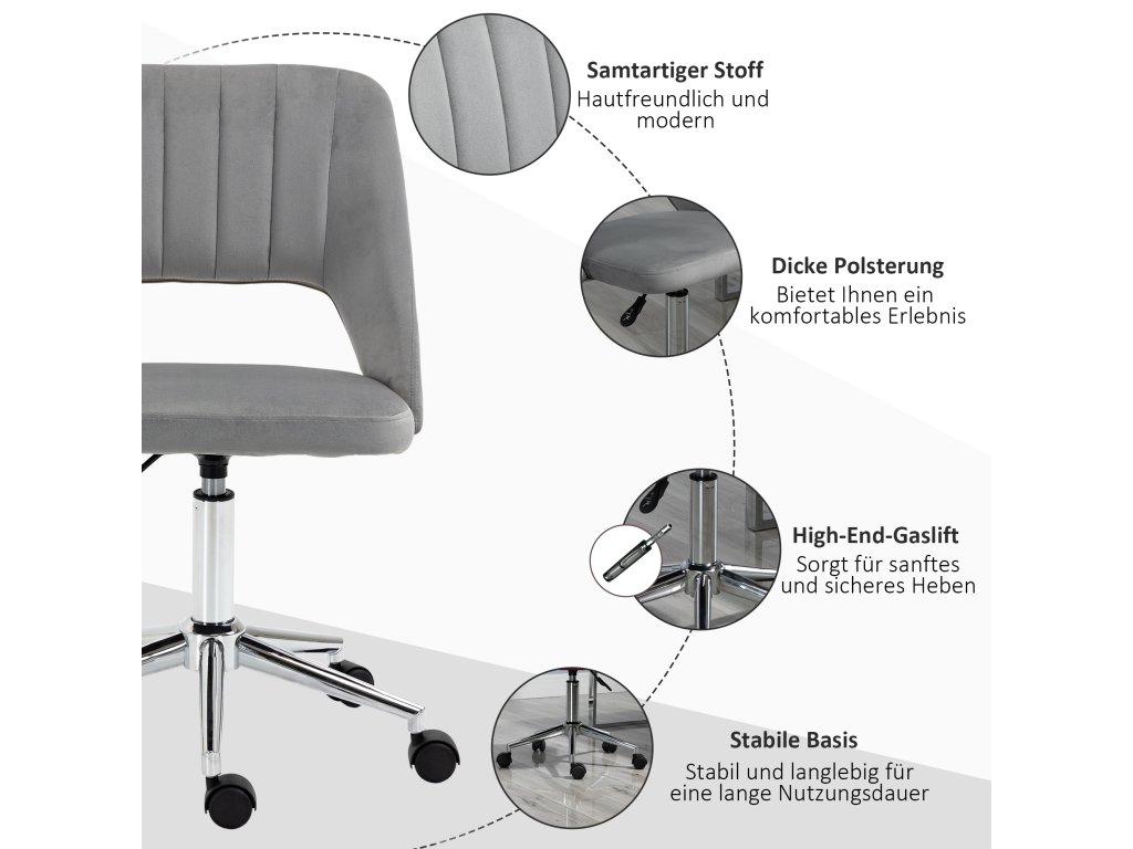Pohodlný design: Tato počítačová židle se zakřiveným opěradlem a silně polstrovaným pěnovým polstrováním nabízí obzvláště pohodlný a odolný zážitek ze sezení díky sametovému čalounění.