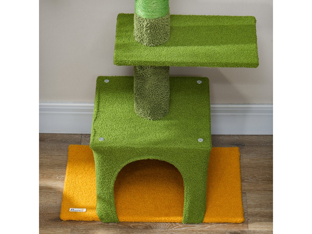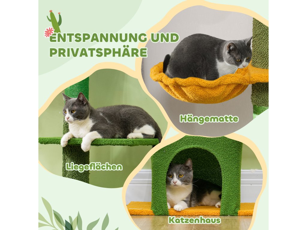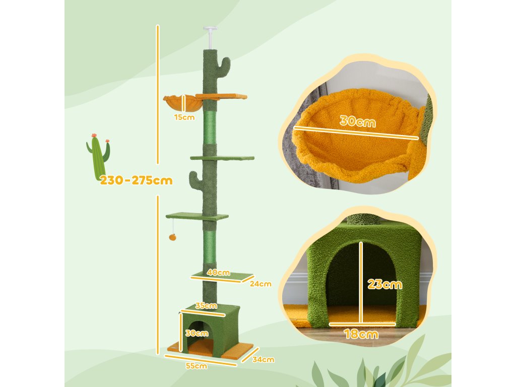 Výškově nastavitelné škrabadlo PawHut 230-275 cm, prostorově úsporné, hrací centrum s houpací sítí, zelené