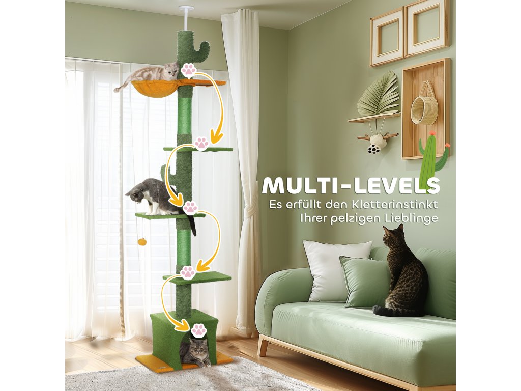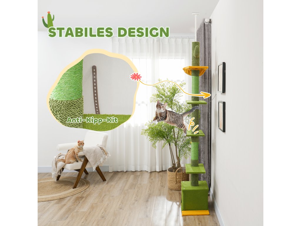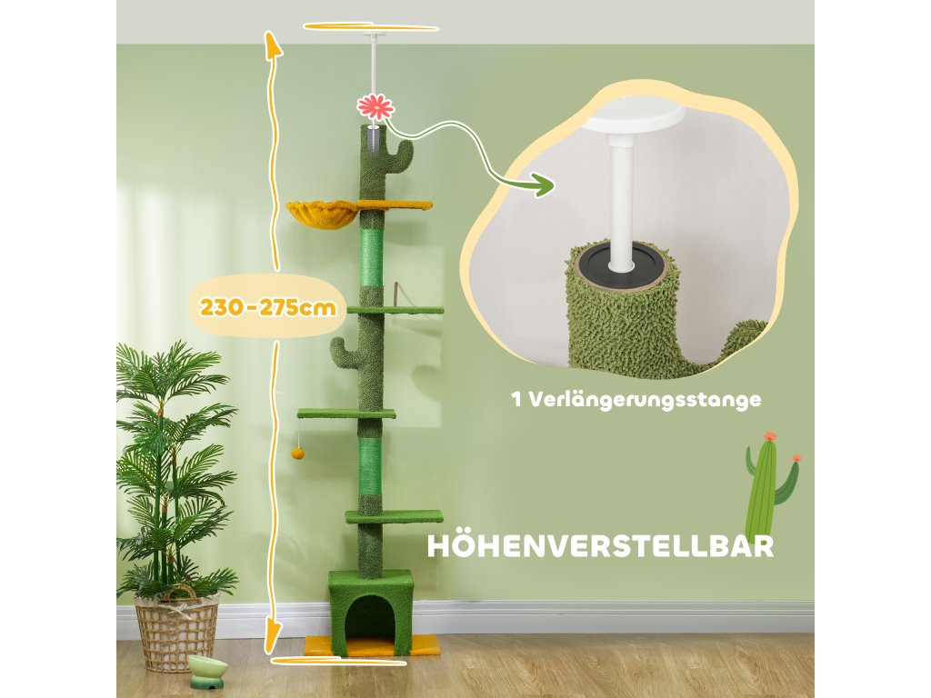 - Výškově nastavitelný a prostorově úsporný: Díky nastavitelné výšce 230-275 cm se tento stropní škrabací sloupek dokonale hodí do každé místnosti a optimálně využívá dostupný prostor