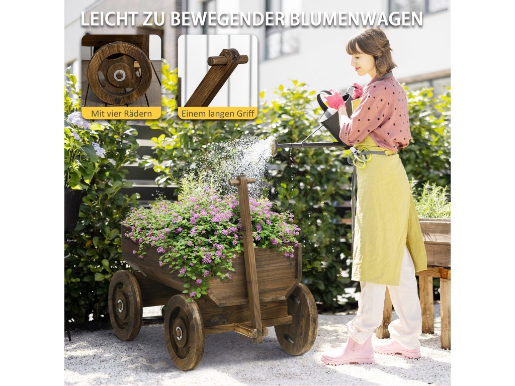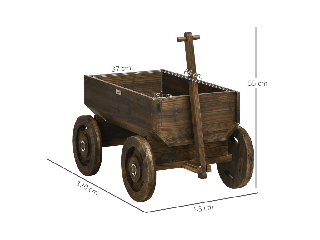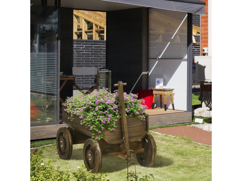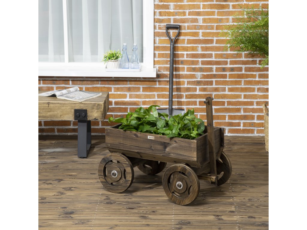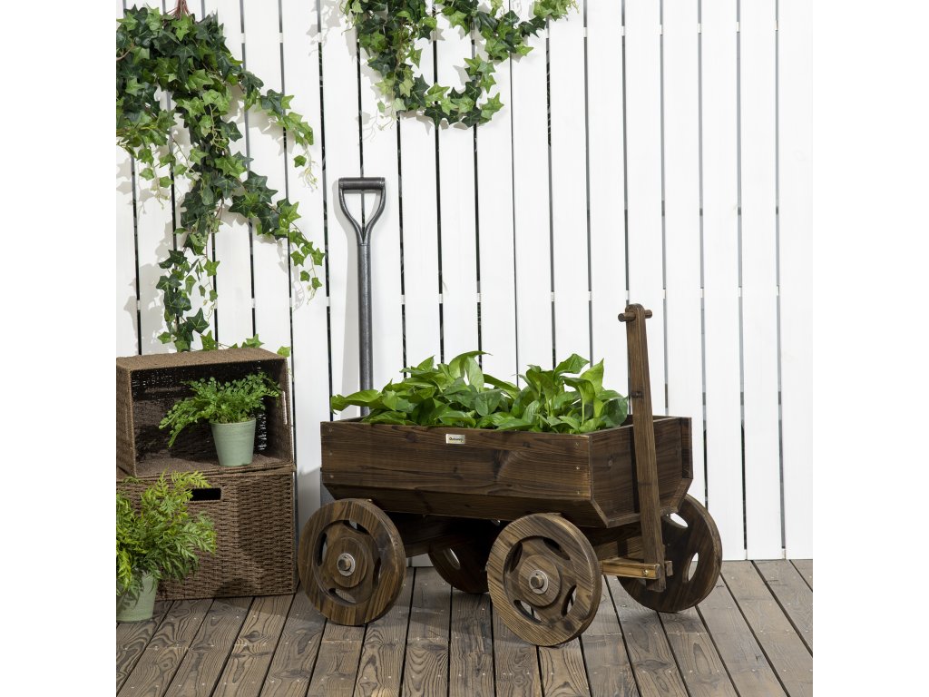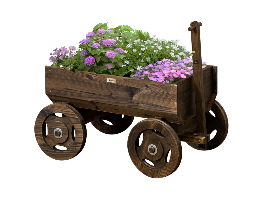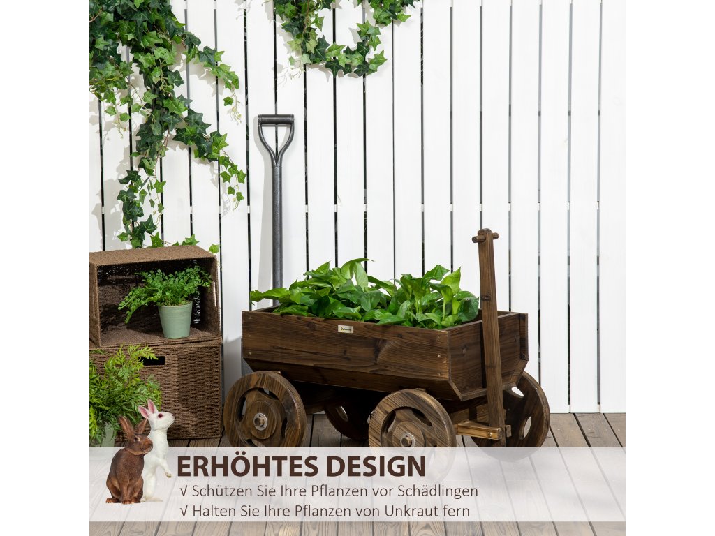 Vyvýšená postel Outsunny v designu dřevěného vozíku, značková povrchová úprava, pohyblivá, odolná proti povětrnostním vlivům, hnědá barva