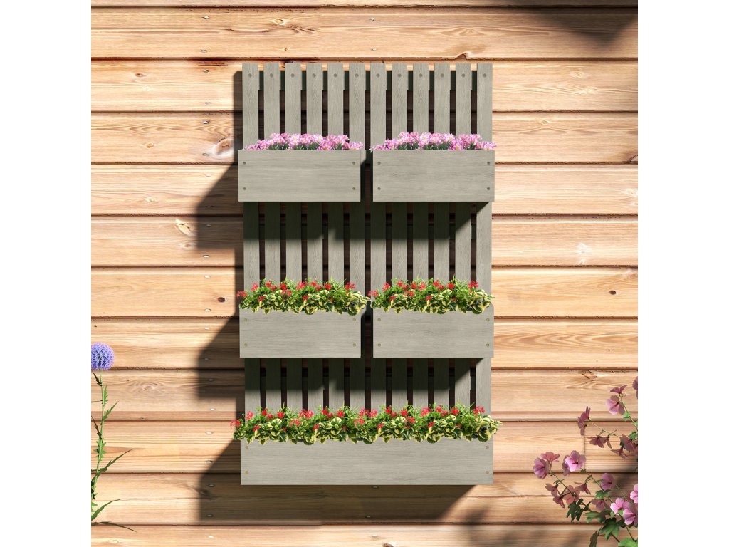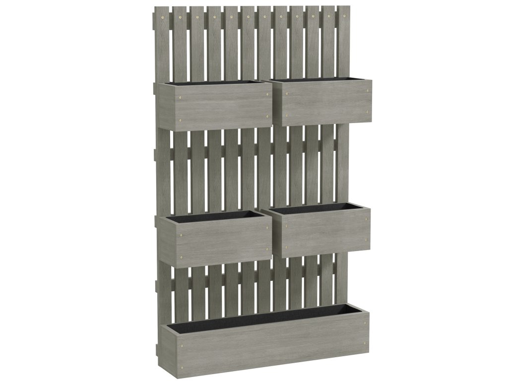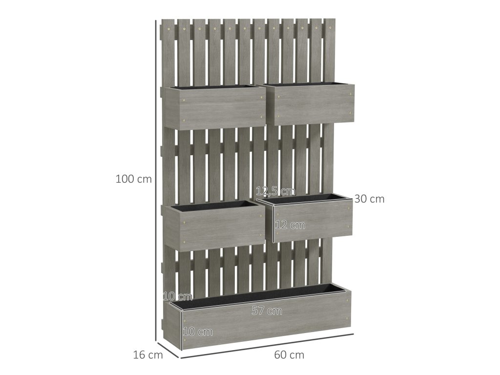 Nastavitelný balkonový vyvýšený záhon s 5 přihrádkami a treláží. Informace: Celkové rozměry: 60D x 16Š x 100V cm. Nosnost: Velká: 18 kg, Malá: 10 kg. Nutná montáž.