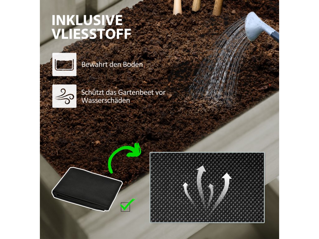 ✔ Konstrukce vyvýšeného záhonu je vyrobena z pevného a stabilního smrkového dřeva s ochranným nátěrem