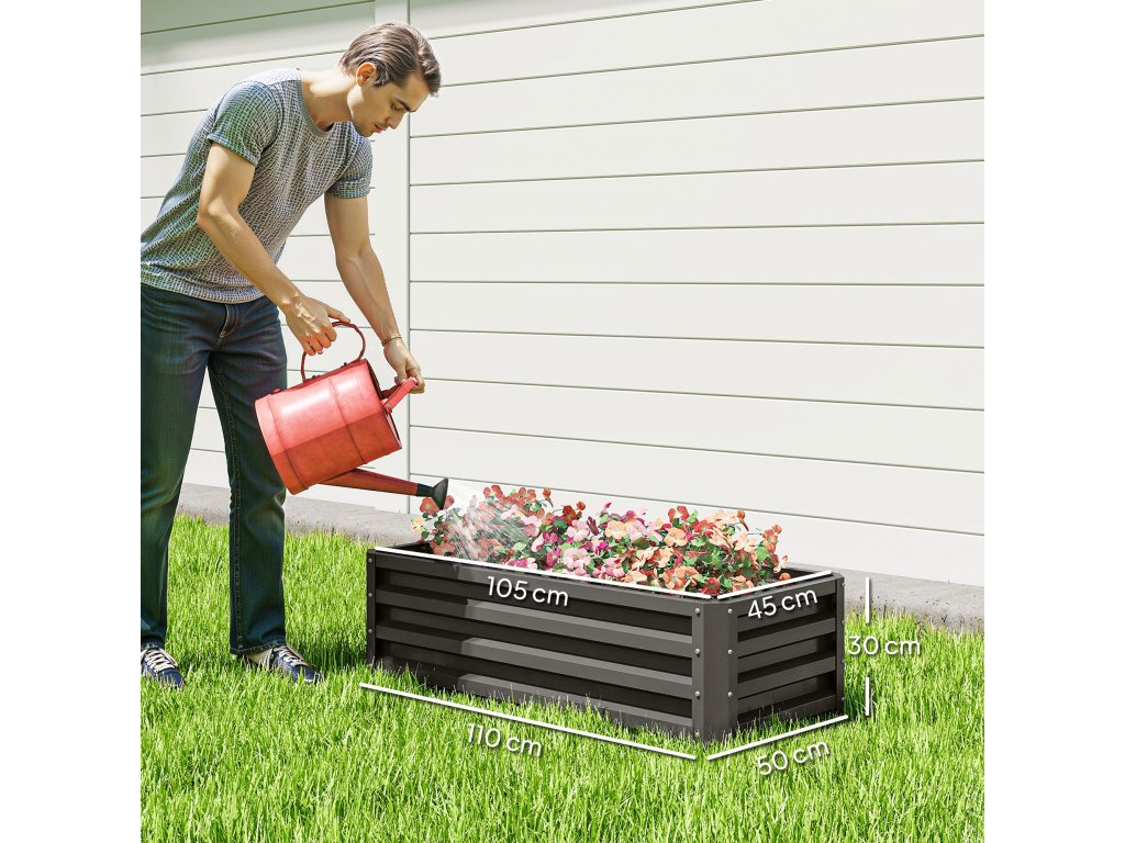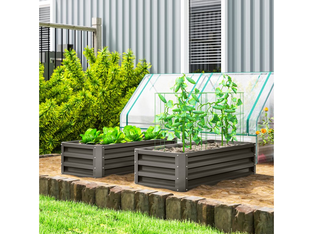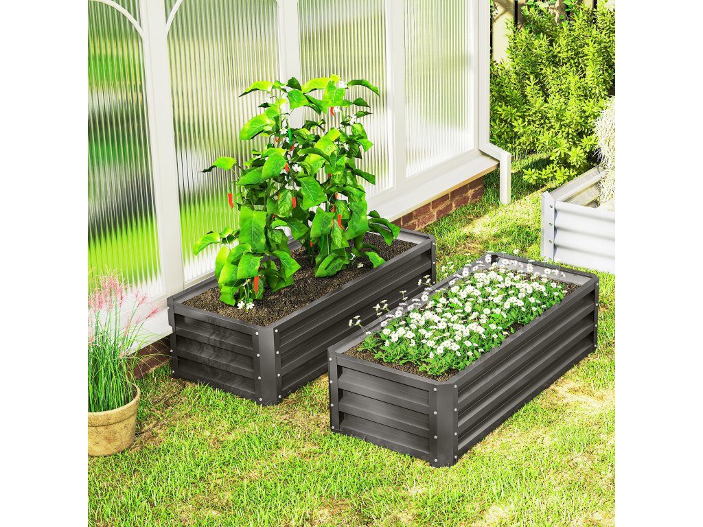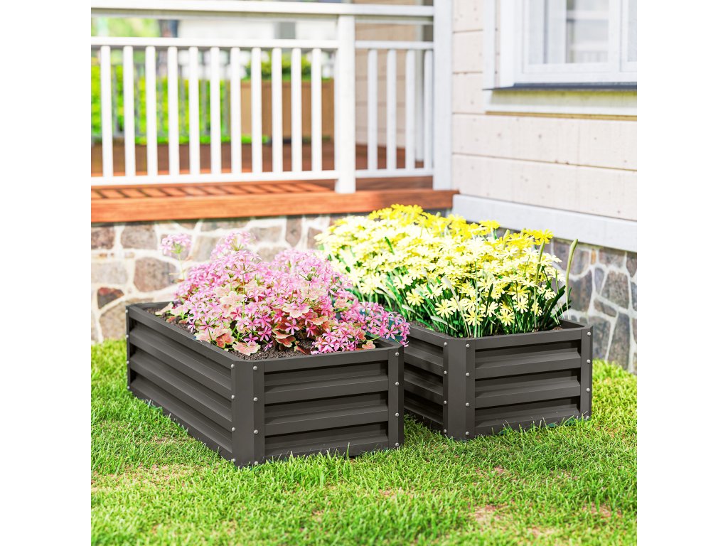 Vyvýšený kovový záhon Outsunny, sada 2 kusů, otevřené dno, do zahrady nebo na balkon, 110x50x30cm, tmavě šedý