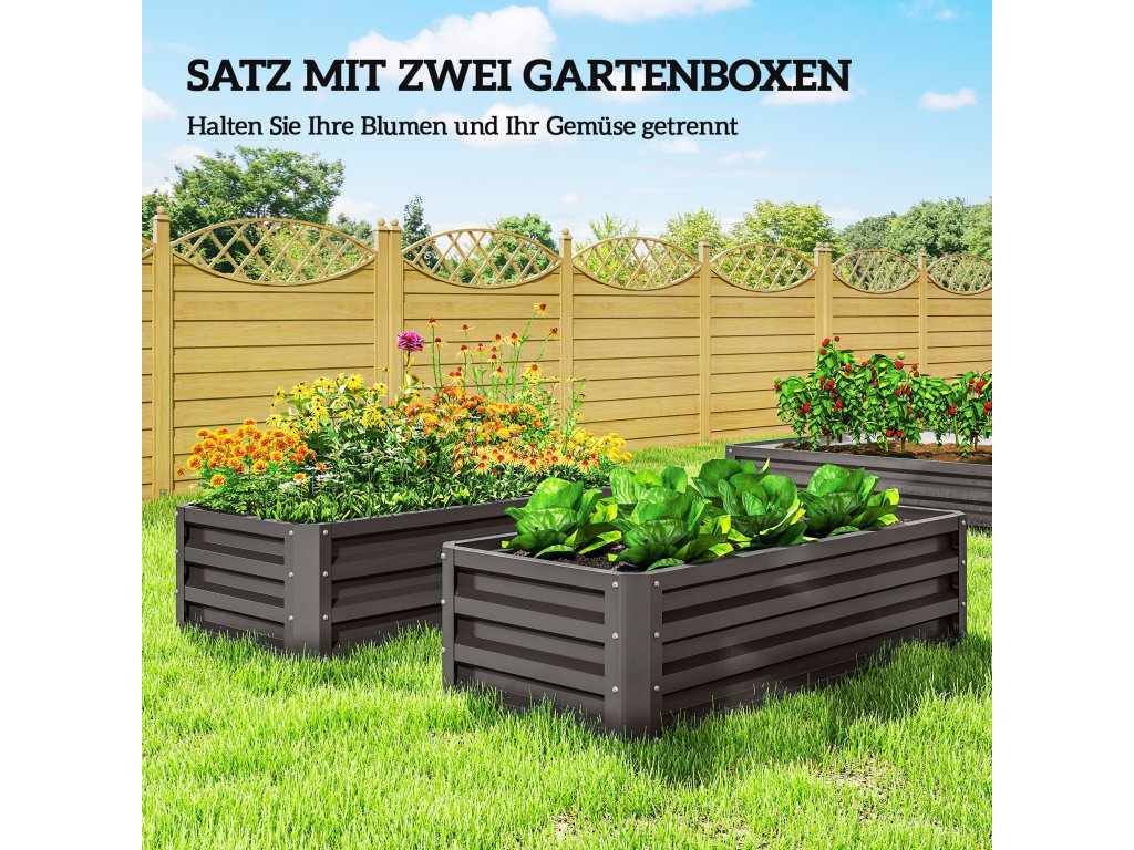 ✔ Sada dvou vyvýšených záhonů, flexibilně použitelných společně nebo jednotlivě, maximalizuje prostor pro výsadbu