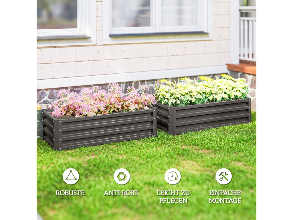 Zažijte radost ze zahradničení na balkóně nebo na zahradě s vyvýšeným záhonem Outsunny na balkon. Tyto vyvýšené záhony, vyrobené z robustní oceli s práškovým nástřikem, nabízejí trvalou ochranu proti rzi a vodě. Hluboká výsadbová plocha bylinkové zahrady umožňuje pěstování rostlin s hlubokými kořeny, zatímco otevřená půda zajišťuje optimální růst. Ideální pro kreativní zahradnické nápady a pohodové zahradnické projekty.