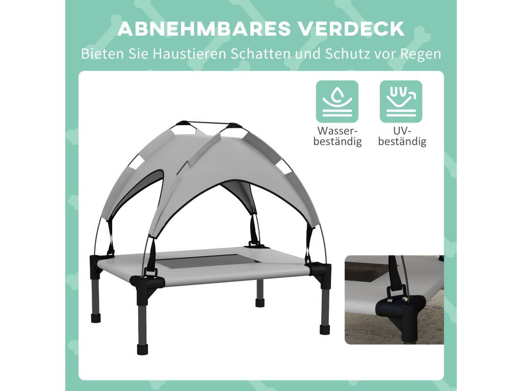Hýčkejte svého psa stylovým pelíškem PawHut, který nabízí nejvyšší úroveň pohodlí. Střešní plachta odolná vůči vodě a UV záření ochrání vašeho čtyřnohého přítele před sluncem a deštěm, zatímco prodyšný potah ze síťoviny zajistí příjemné chlazení. Tento chladící pelíšek pro psy je ideální pro venkovní dobrodružství a nabízí perfektní útočiště pro vašeho mazlíčka. Dopřejte svému psovi pohodlí, které si zaslouží, a užijte si společné hodiny odpočinku venku.
